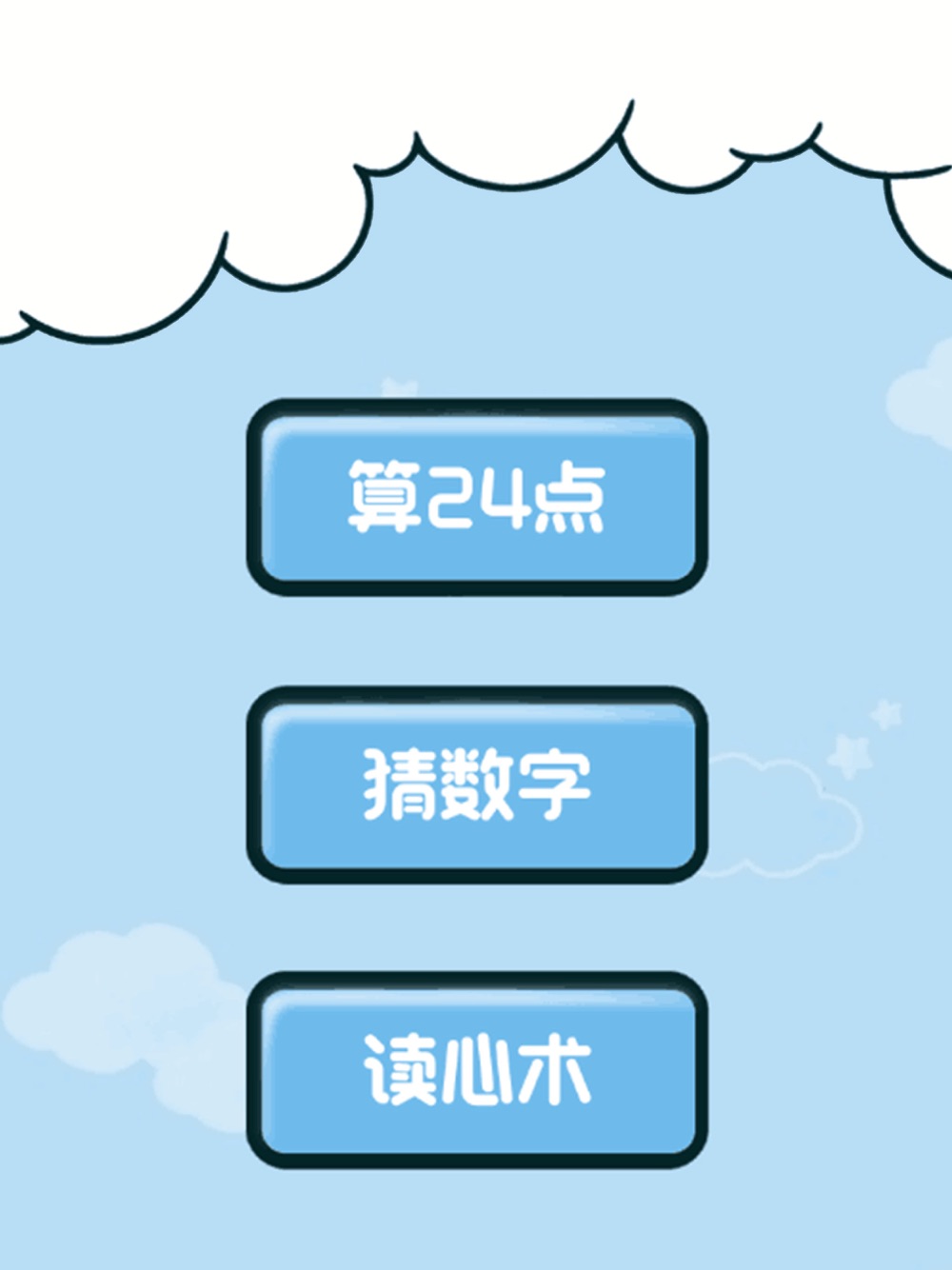 这是一款经典的数字游戏大集合,游戏中有经典的猜数字玩法,还有经典的算24点玩法,更有适合家庭聚会魔术表演的读心术玩法,快和朋友们一起来玩吧!