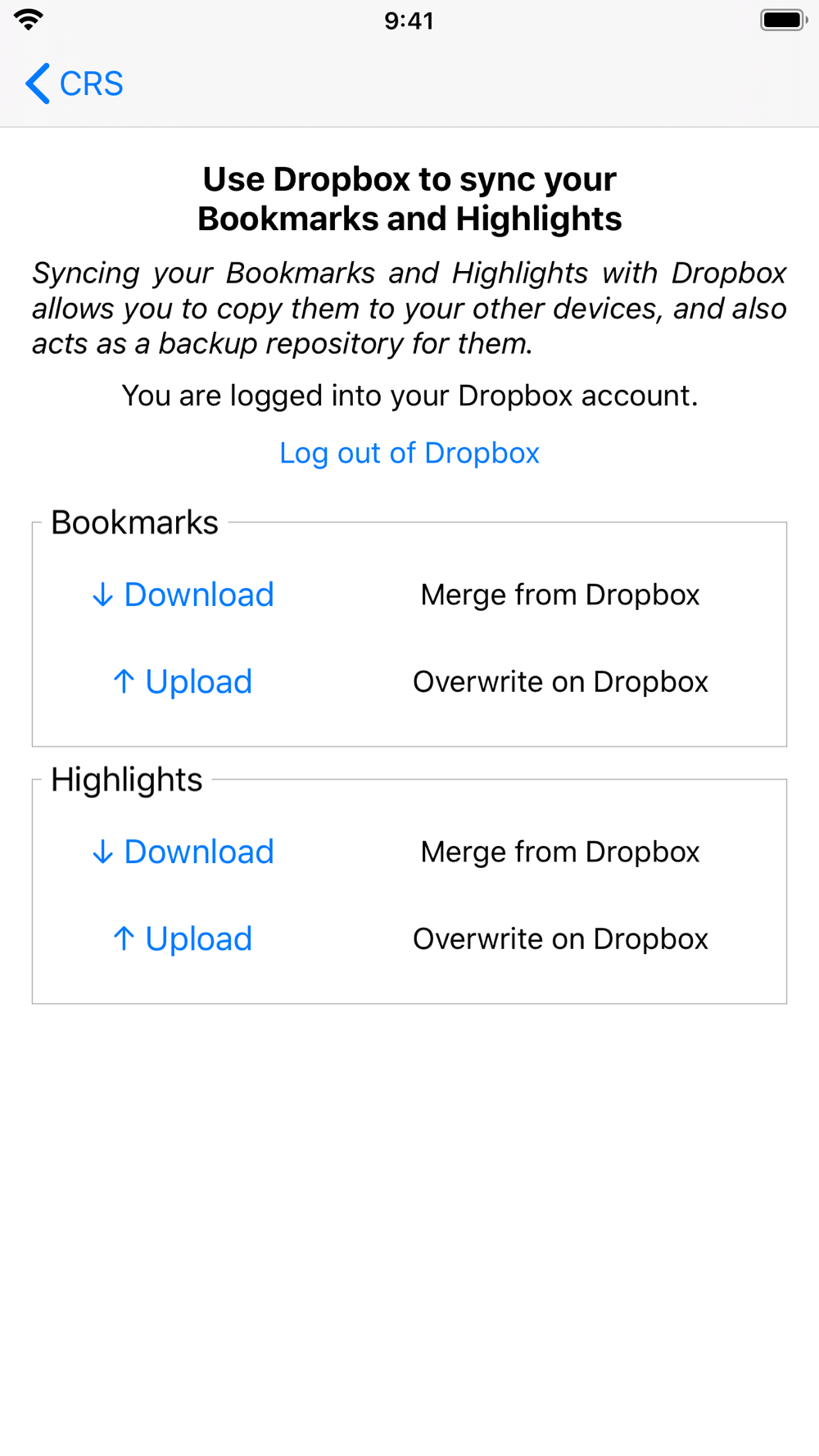 • Upload all your Bookmarks and Highlights to Dropbox to keep all your devices synchronized.