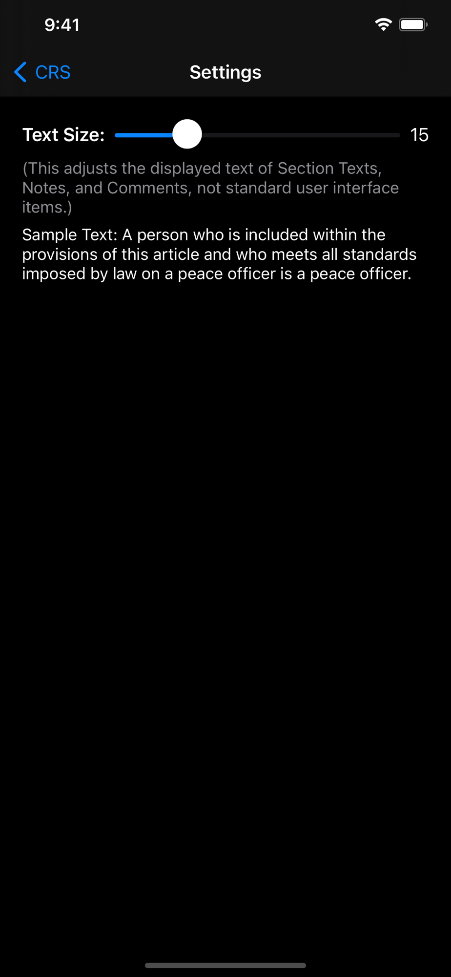 • Share text of a statute (all of it, or just a selection) with colleagues via text message or email instantly from within the app. A clickable link is included that takes them straight to the statute (if they have the app installed on their device).