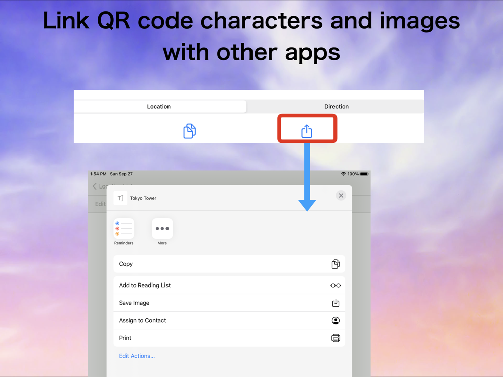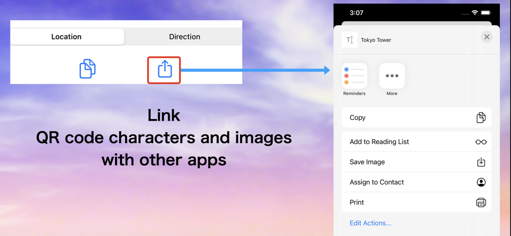 - Generate QR codes for scanning texts, locations, directions, uniq ID, etc.