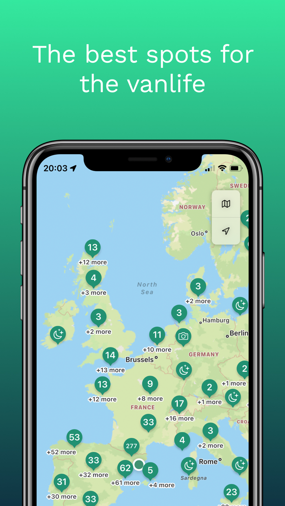 With Campernight you can find the best spots to stop with your van to rest, spend the night or enjoy a meal.