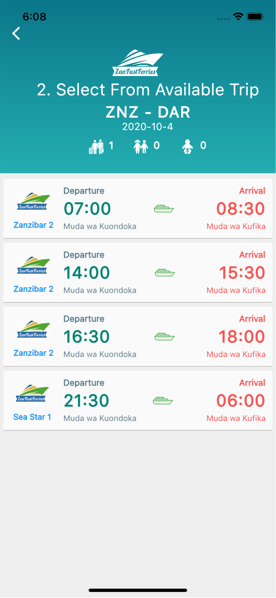 Zan Fast Ferries is the first booking app in Tanzania that gives user full control when booking for ferry trips between Zanzibar and Dar es Salaam. The app let user search for availability, select trips, choose class they wish, choose the seat and complete the booking in less than 3 minutes.