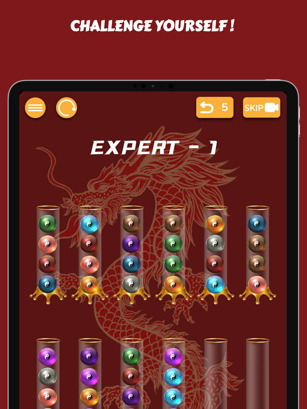 Baodiing is a fun and addictive puzzle game! Try to sort the colored spheres in the holder until all spheres with the same color stay in the same holder.