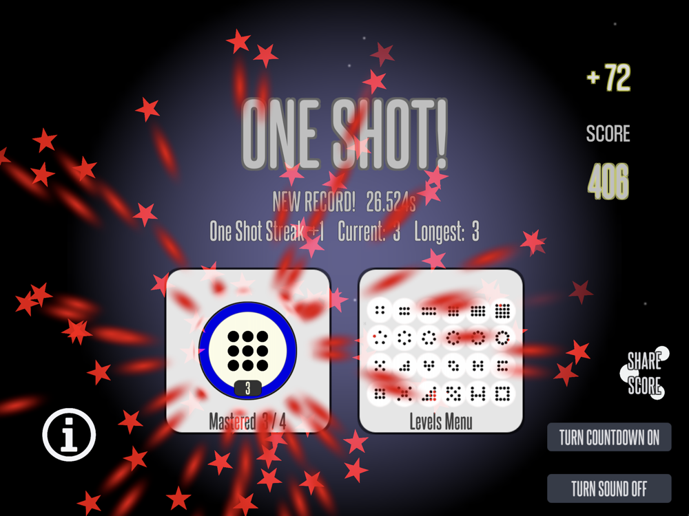 24 levels from very easy to very hard. Master each level by solving 4 puzzles - you are allowed three tries in each of the first two, two tries in the next and, finally, you must solve one puzzle in a single try. The level is then open for free play with three tries forever. Ads only required for bonus rewards: You have an opportunity to watch a :30 ad to unlock a level and/or to get 2X points to help you run up your score.