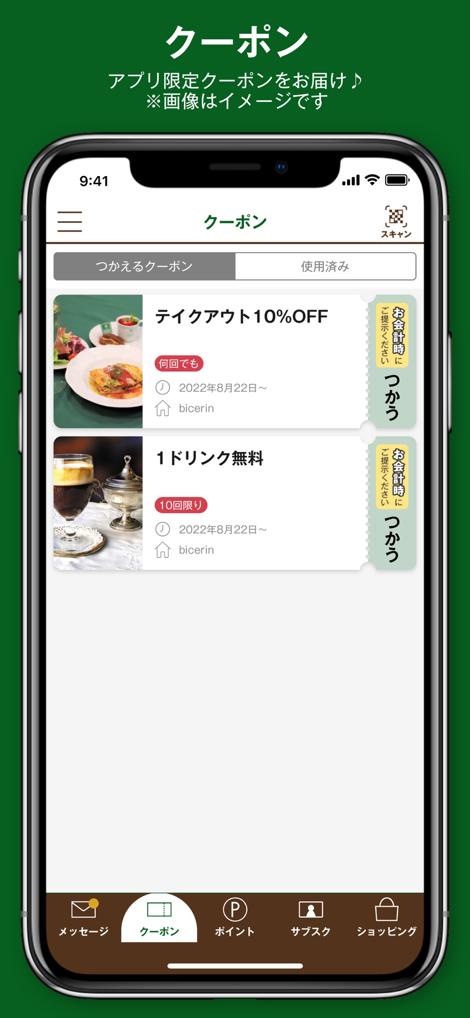 アプリ限定のおトクなクーポンを定期的に配信!