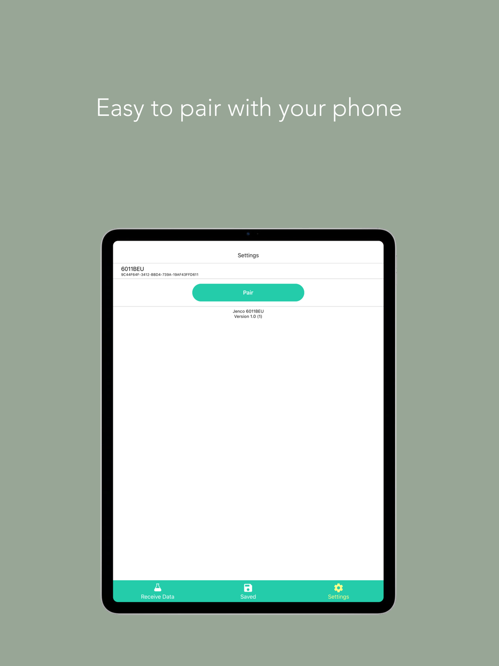 * Easily pair the iPhone with Jenco models 6011B / 6011BEU professional pH/ORP/temperature portable meters.