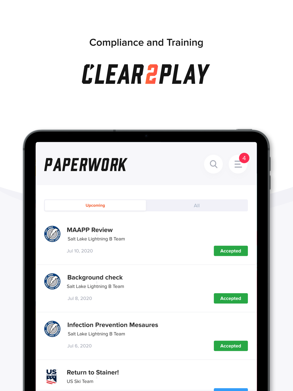 Clear2Play provides compliance management and communication for your organization. Whether you need to get your coaches trained, certified or background checked or you need to do real time surveys with alerts, Clear2Play provides you with the tools to manage your organization in a easy-to-use mobile application accessible at home, in the car or on the field.