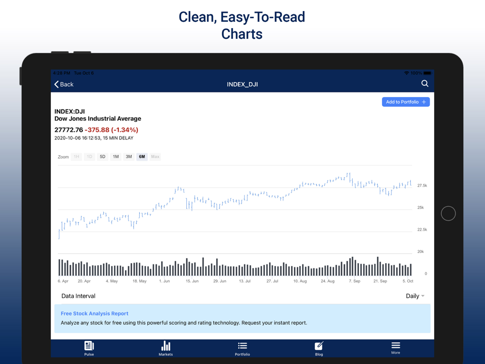 Clean, easy-to-read charts show price action on numerous timeframes.