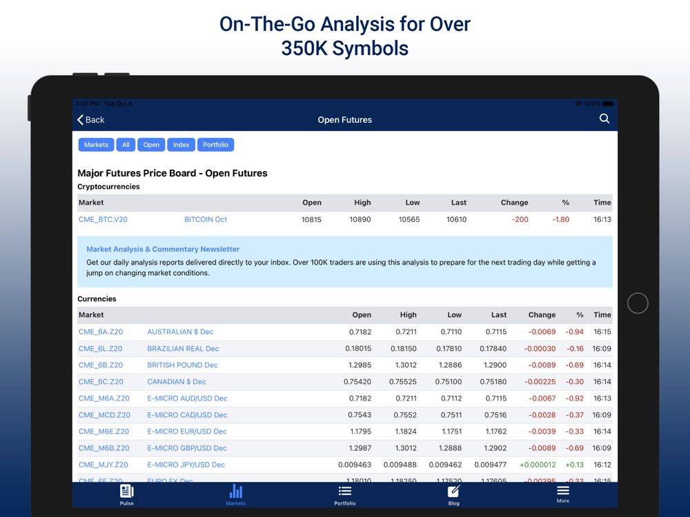 From a big-picture look of the markets to analysis on individual commodity contracts, this is the only financial app futures and options traders need.