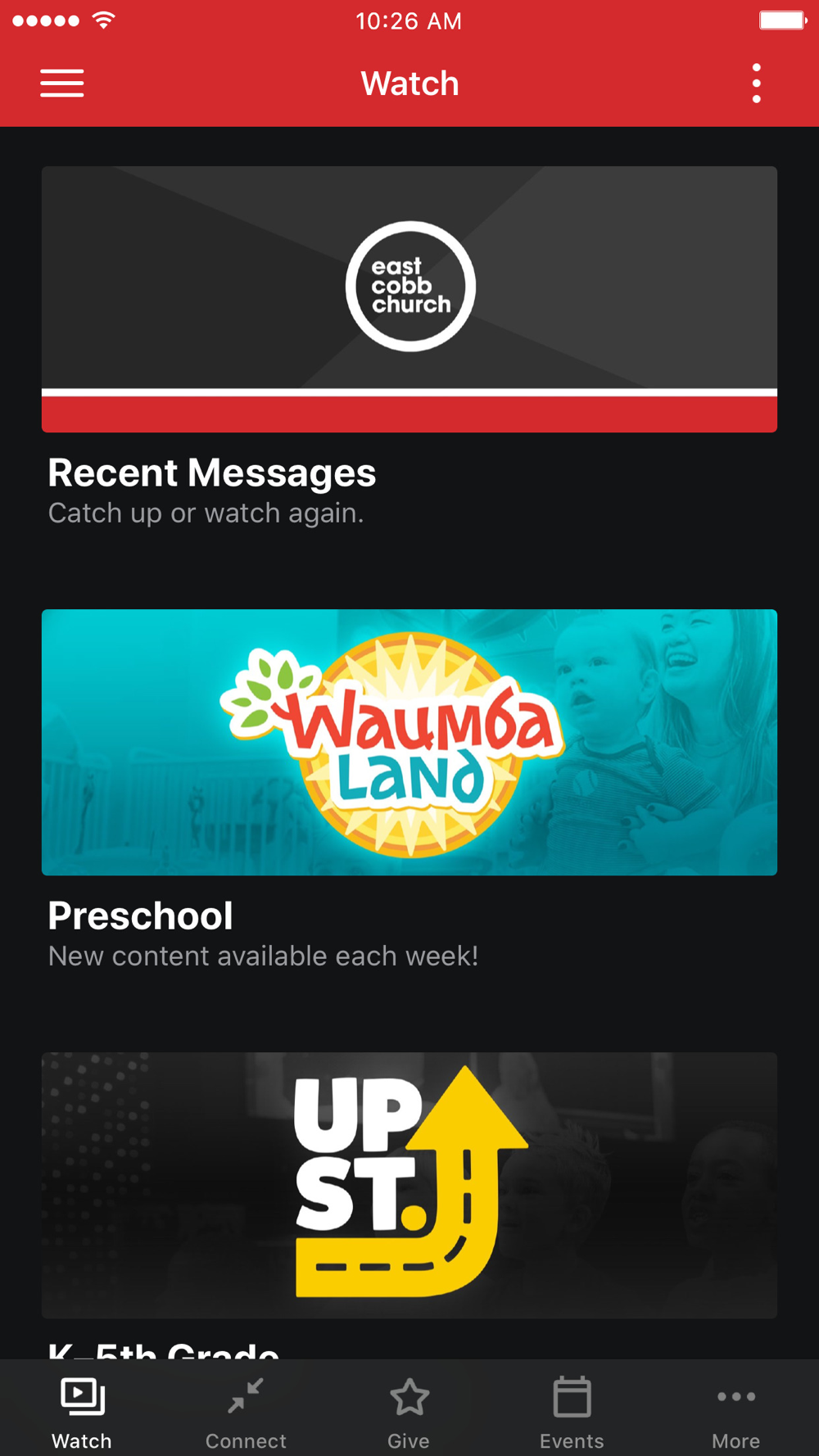 The East Cobb Church App was created with the Subsplash App Platform.