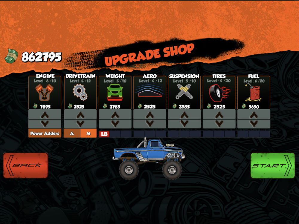 There are a variety of vehicles to unlock and purchase. Some are easy to find while some will take a keen eye! Each one is unique in many ways. From the way they handle, to its engine, to its transmission, to its power and speed. Every vehicle has its own gearbox and gear ratios. Some are two speeds, some are 6 speeds and some are mighty purdy! Even cooler, you have the option of changing gears manually like a real car… if you can find the needed parts in the Junkyard that is! Or just go granny style and auto all the way. Some vehicles take off slow but have higher top speeds, while some take off quickly with tons of traction but have lower top speeds. Some handle turbochargers and superchargers better than others. Did I mention that you can add turbochargers and superchargers to some vehicles?