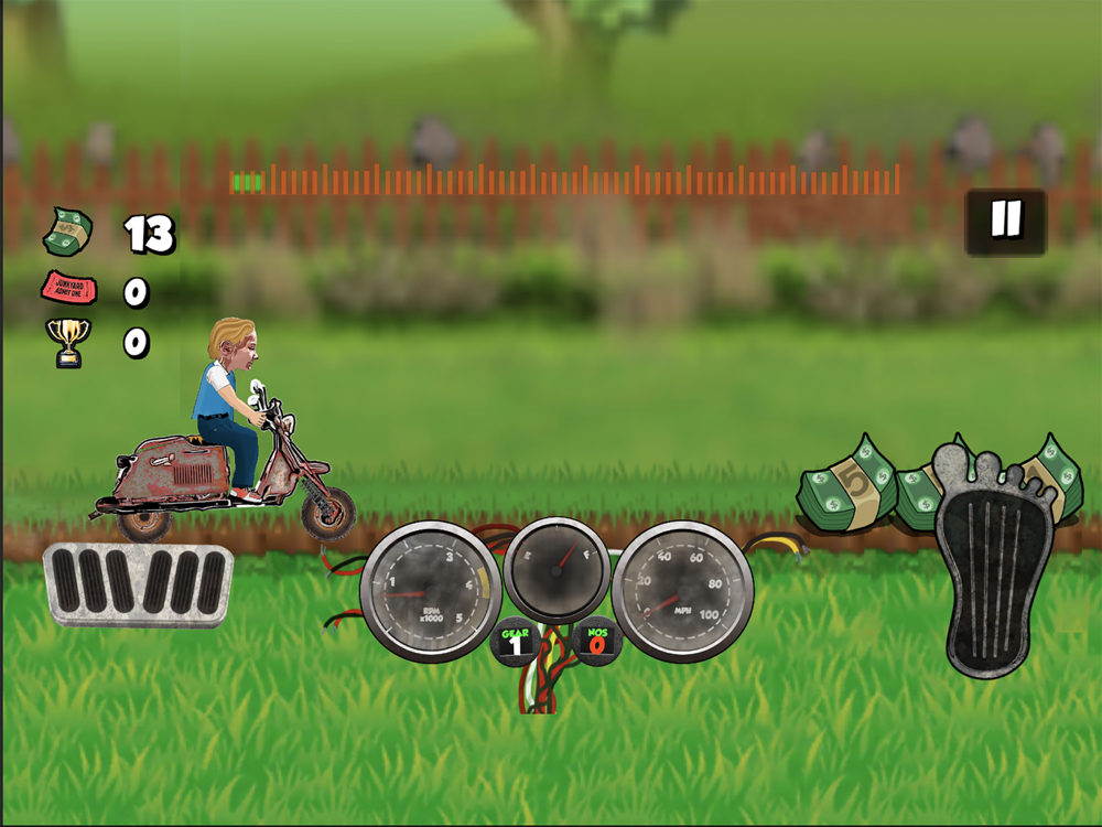 Compete against other drivers and win bucks and trophies at a variety of locations. Can't keep up? No worries! Just head down yonder to Jim's Junkyard and find some super cool upgrades like better tires, NOS On Demand and even full restoration kits! Who knows what you'll find! As you play, you'll be able to buy and upgrade a variety of vehicles from Grandpa's old scooter to a fire breathing Monster Truck!