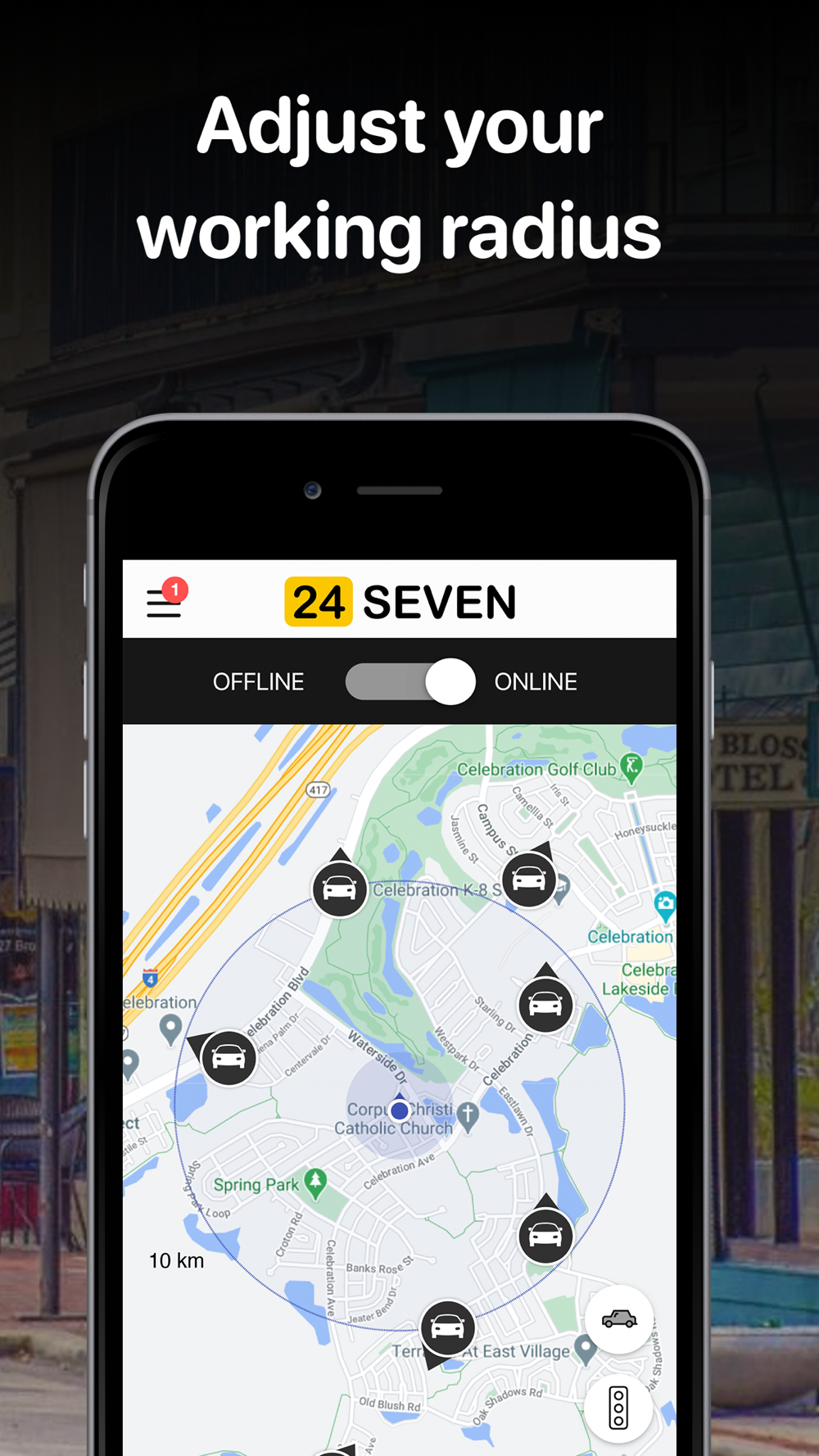 24Seven helps drivers organize their rides and bookings. With just one click you can accept taxi rides when you are close to passenger location.