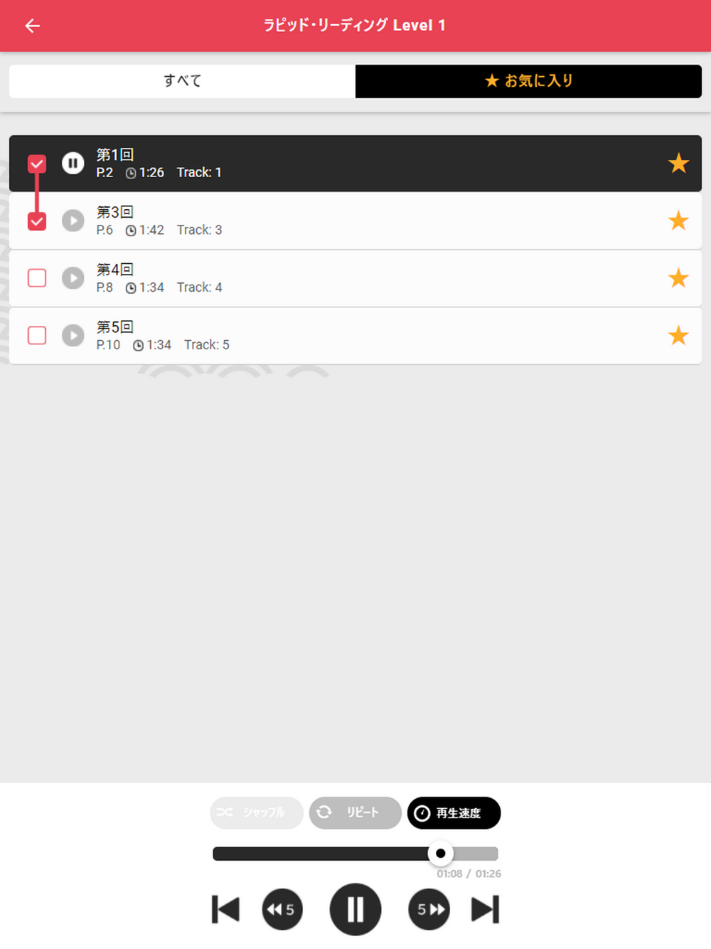 0.6倍速から1.4倍速まで調整できます。速くて聞き取れない場合はゆっくり、慣れてきたら速めのスピードで聞いてみましょう。