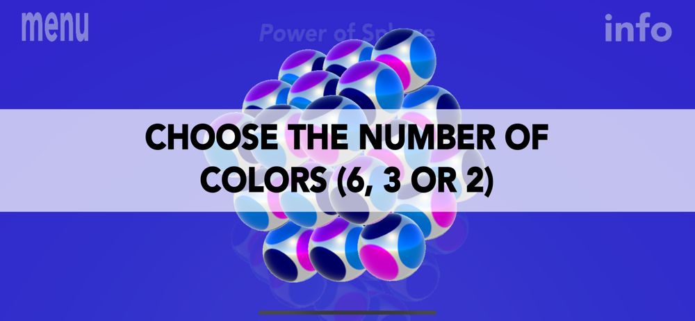 YOU CAN CHOOSE THE NUMBER OF COLORS (6, 3, OR 2) AND THE NUMBER OF SPHERES (26, 8 OR 4).