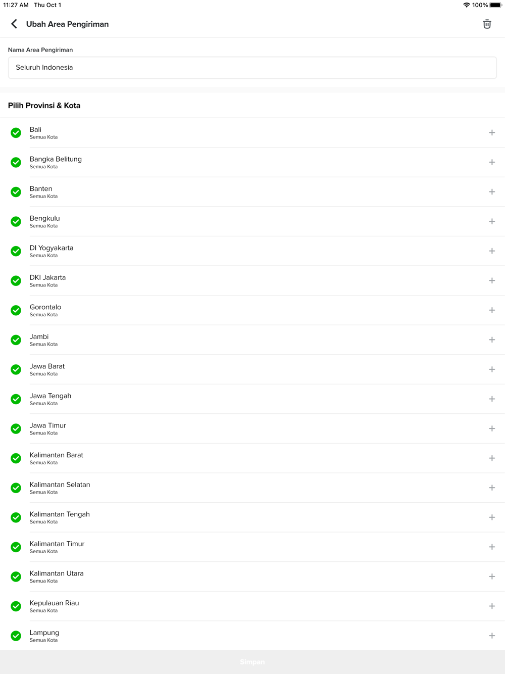 Bisa pilih pengiriman same day atau reguler dan atur jangkauan pengiriman ke dalam atau luar kota.