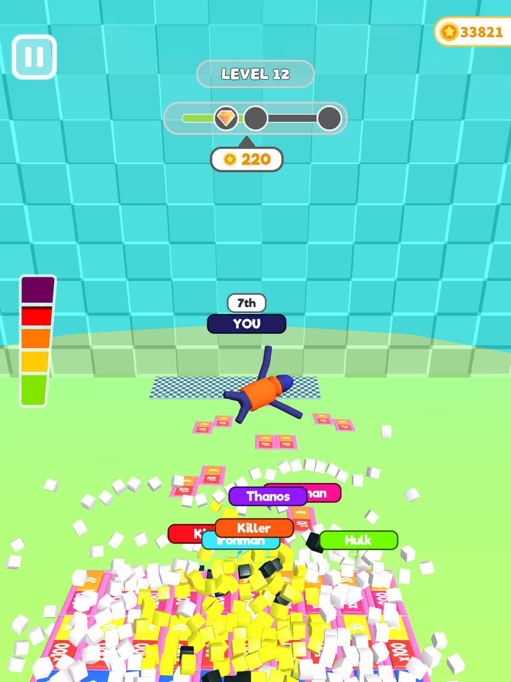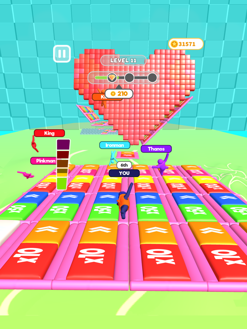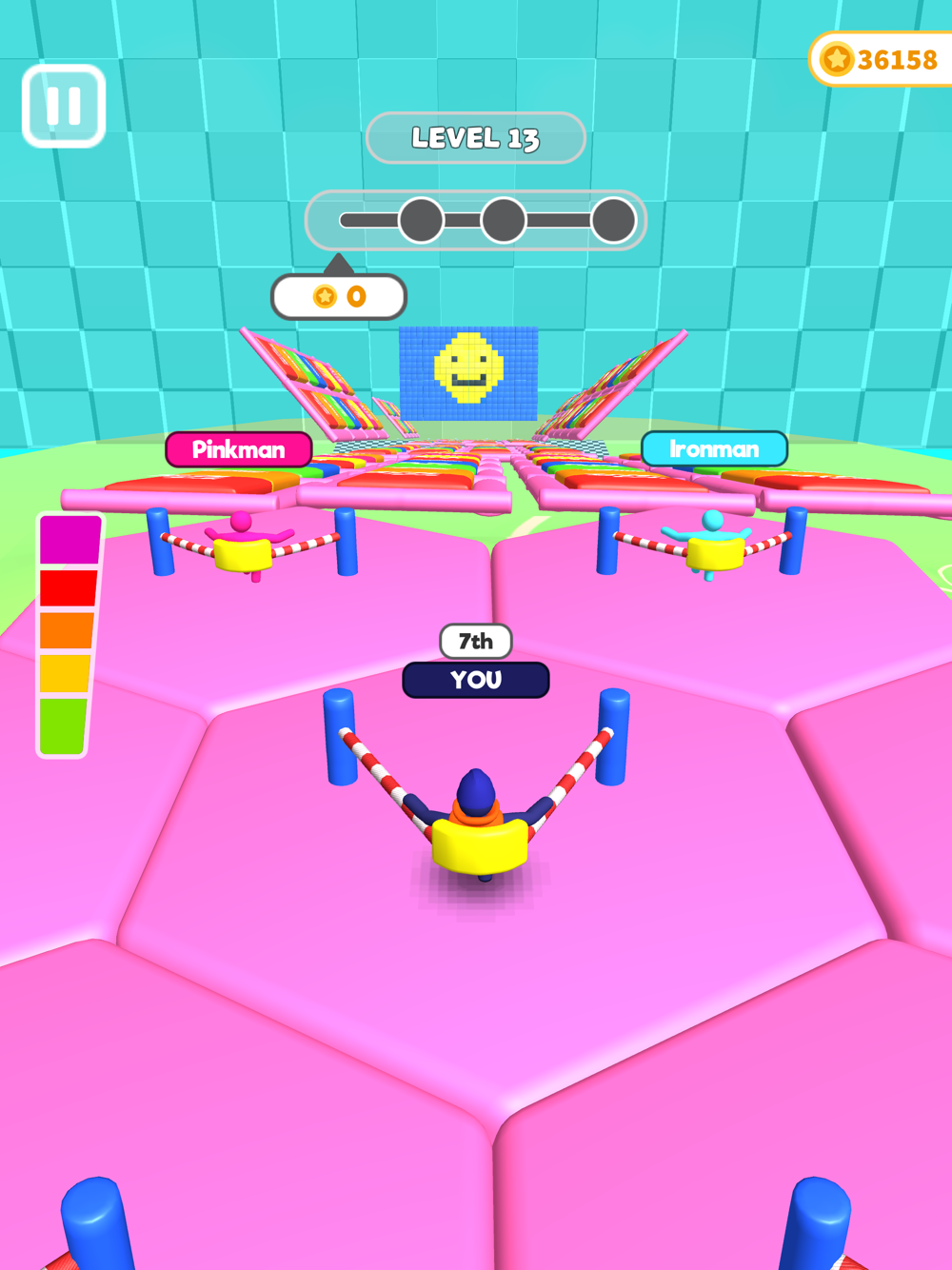 Launch yourself off a slingshot and keep bouncing on the platform as far as you can to grab coins and prizes.