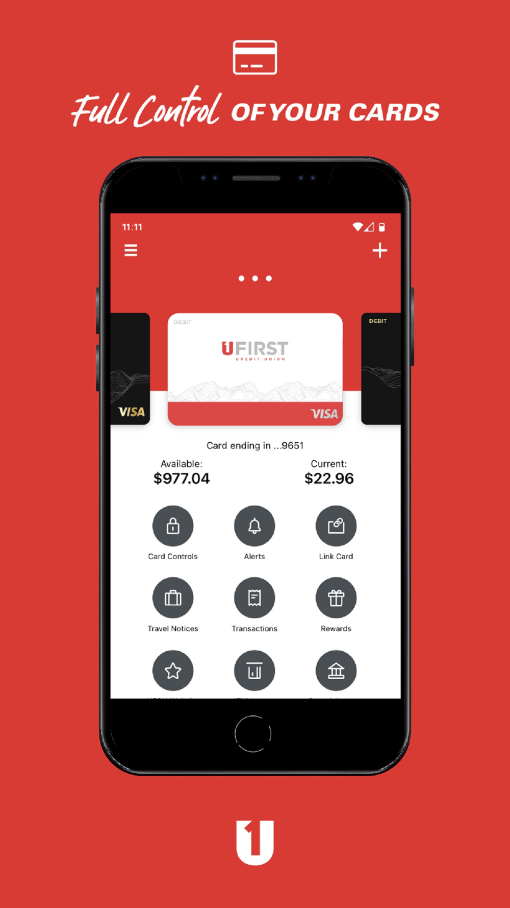 With UFirst Card Manager, you can easily manage your UFirst credit and debit cards from anywhere at any time, all from your phone. UFirst Card Manager is free to download, secure to use, and provides greater card control so you can feel more confident with your cards and transactions.