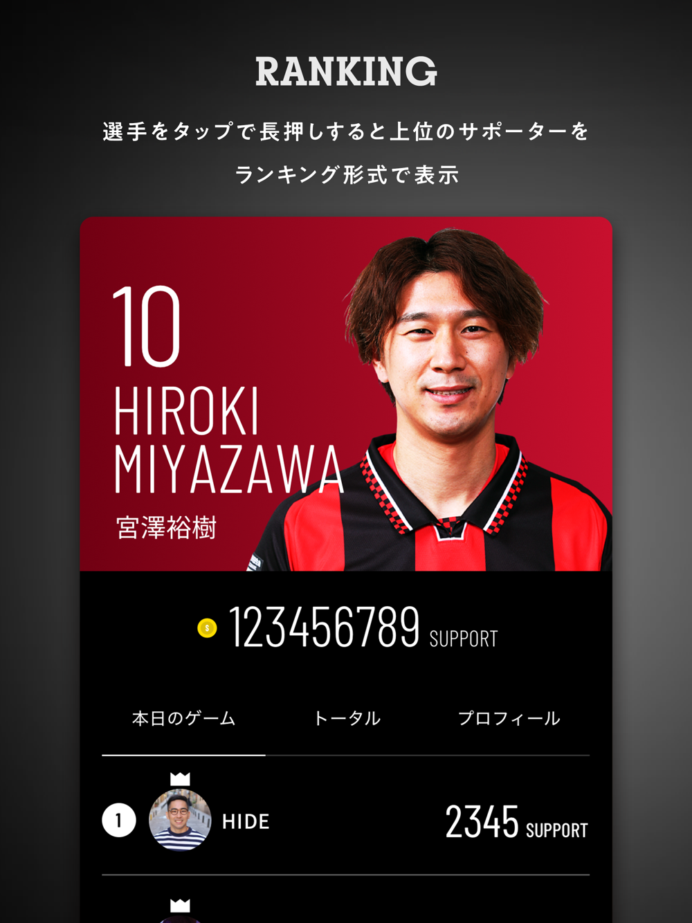 獲得した「サポート」を「サポートグッズ」に換えて、お気に入りの選手やプレーの一つ一つに対してあなたの「応援」を届けよう!