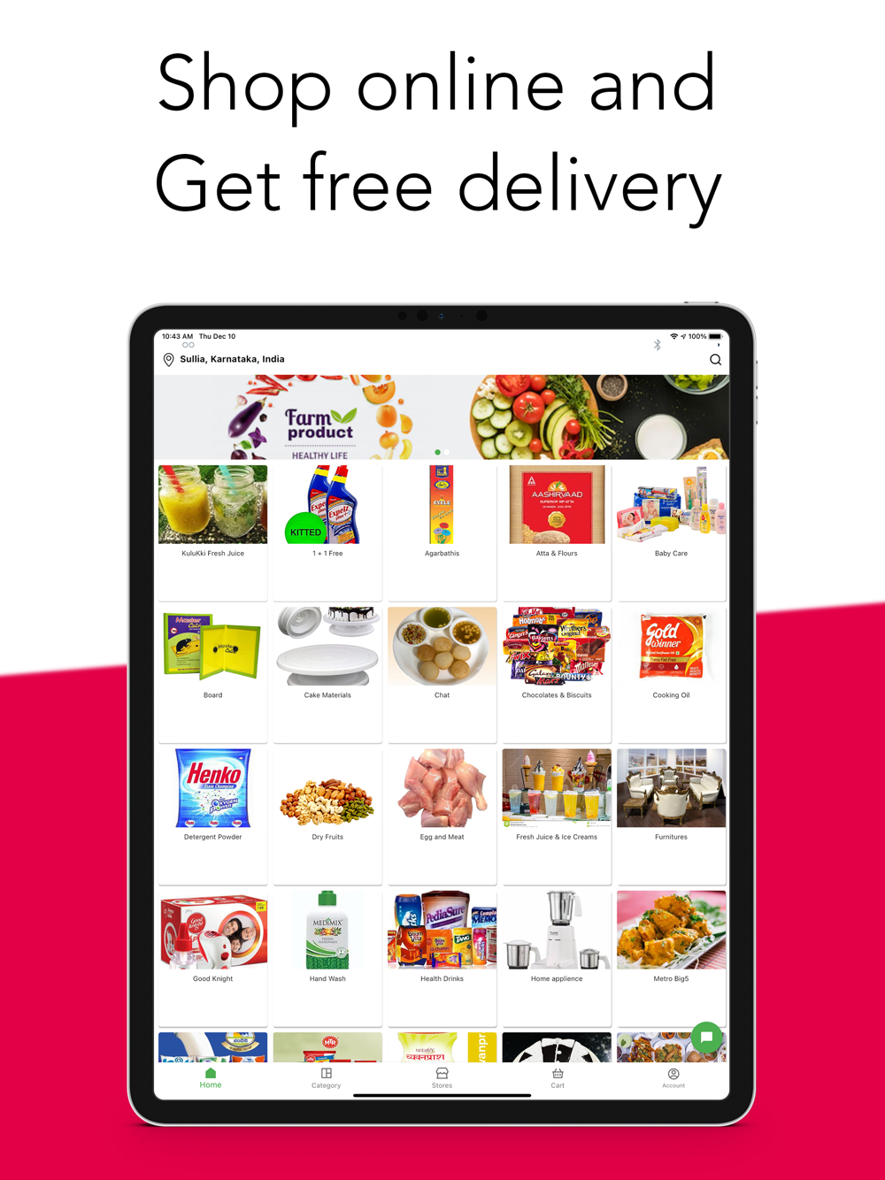 This application displays most of the products available in the nearest stores. Customers can browse through it and order required items.