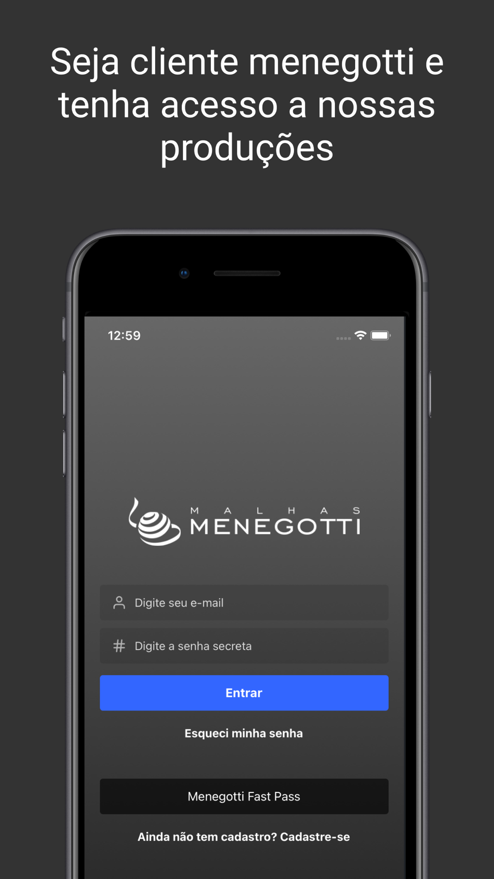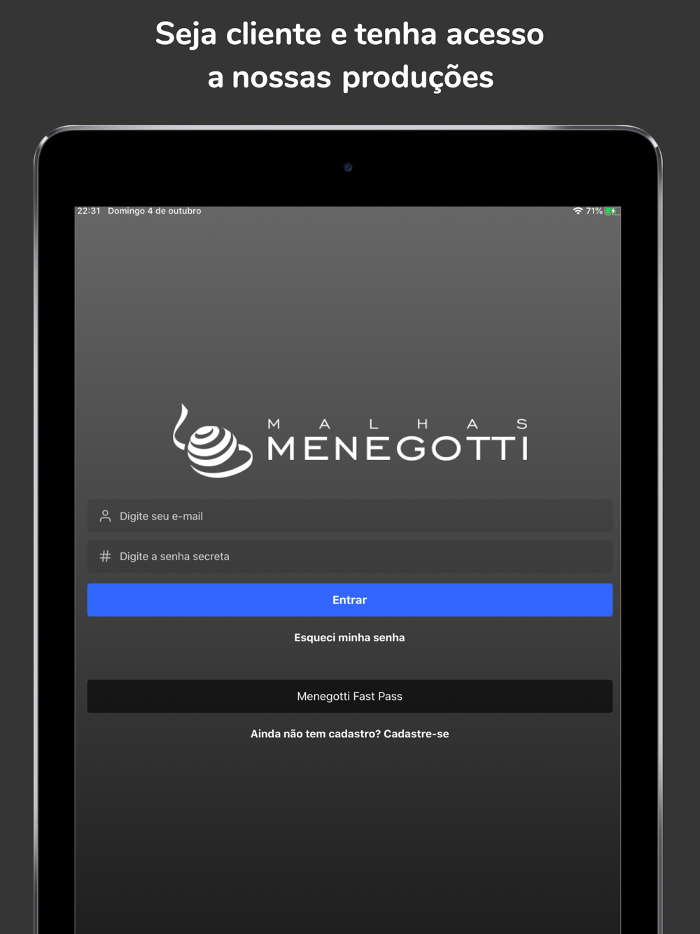 Aplicativo desenvolvido para clientes da Malhas Menegotti.