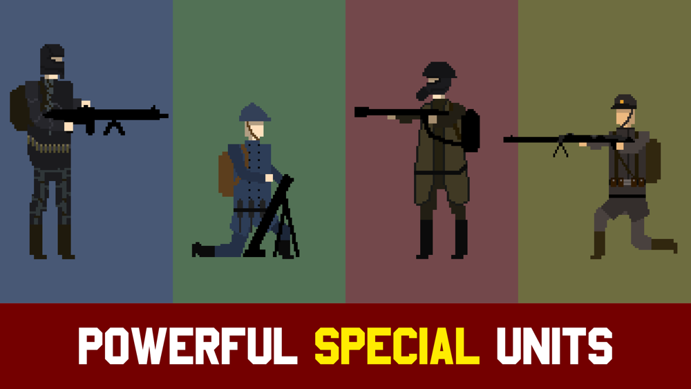 Select a variety of unique pixel units and spawn them strategically to be the hero of the war!