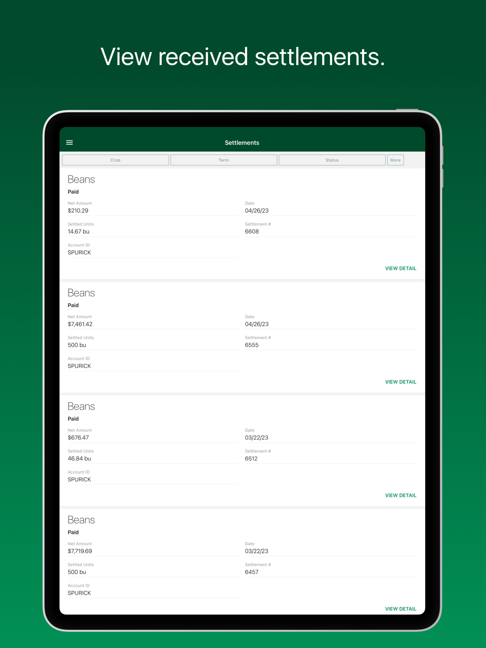Settlements: See information on your payments, when and where you need it