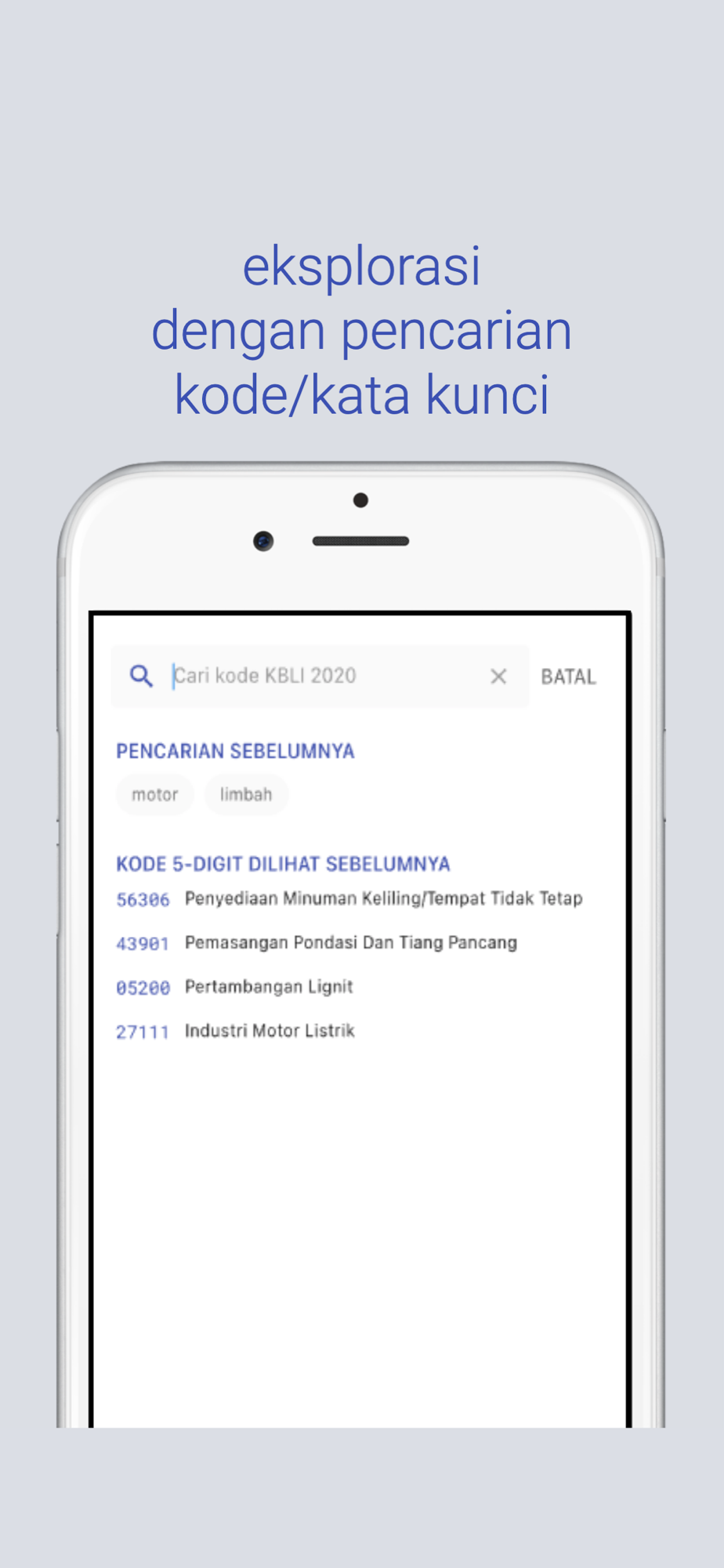 sibaku MOBILE memberikan kemudahan pencarian kode klasifikasi statistik, meliputi:
