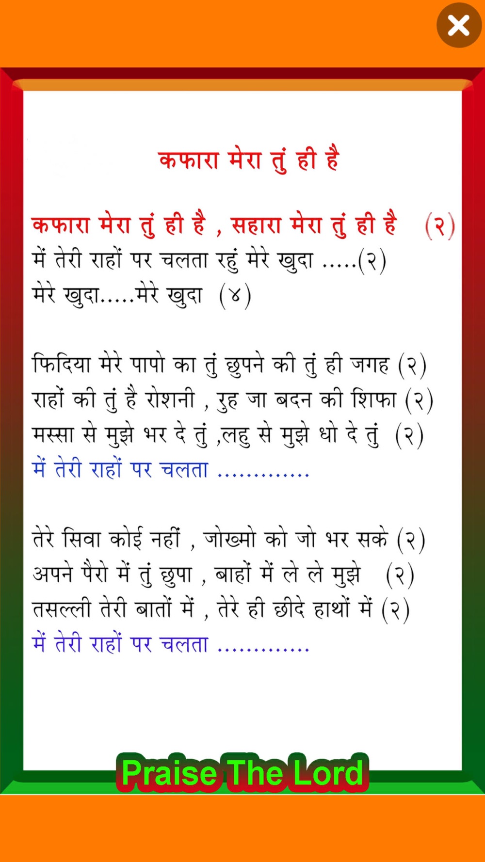 Offline 100 Hindi Christian Songs and lyrics available in this app.