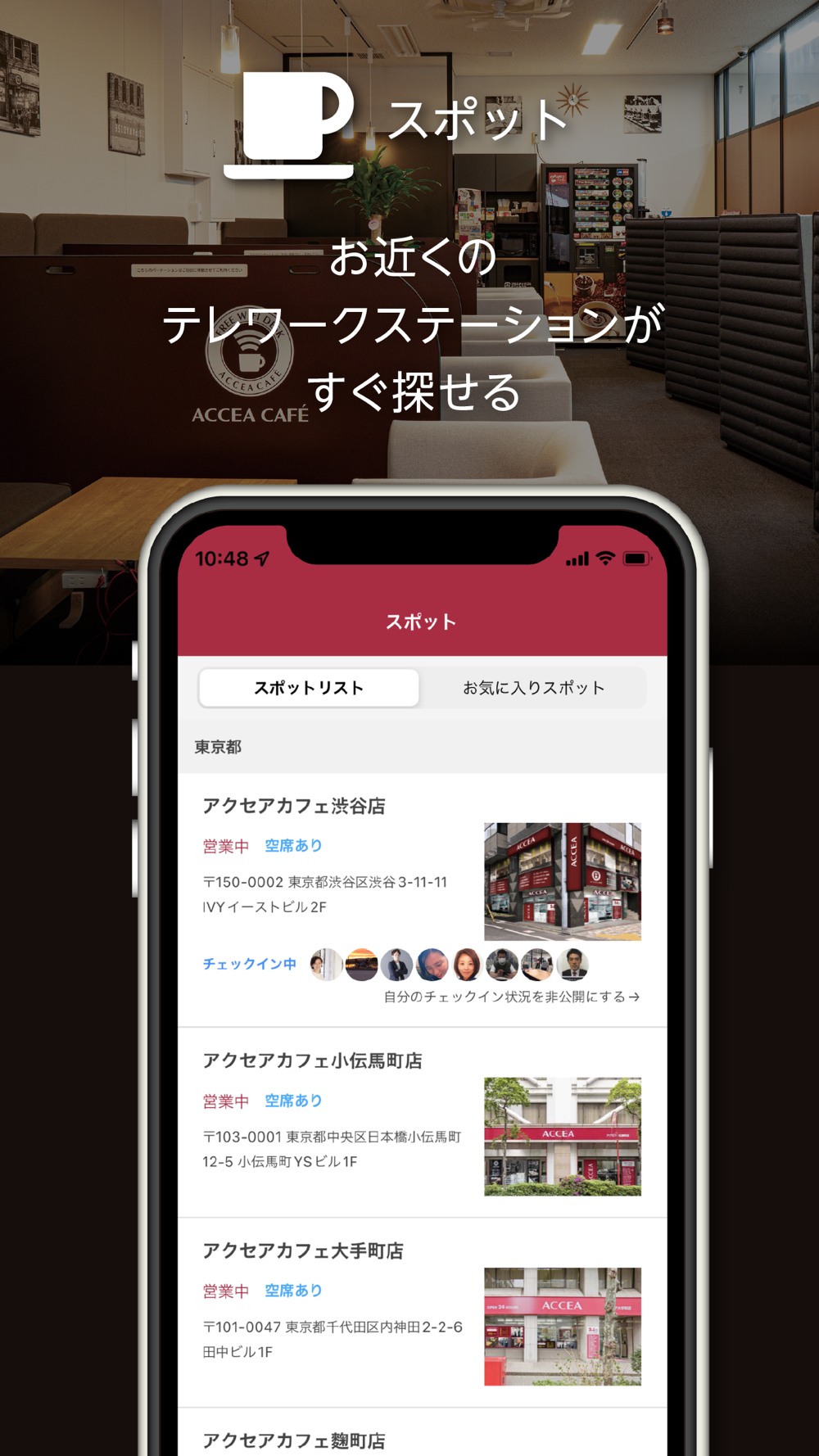 コミュニティはリアルタイムでアクセアスポットの全ての利用者が表示されます。