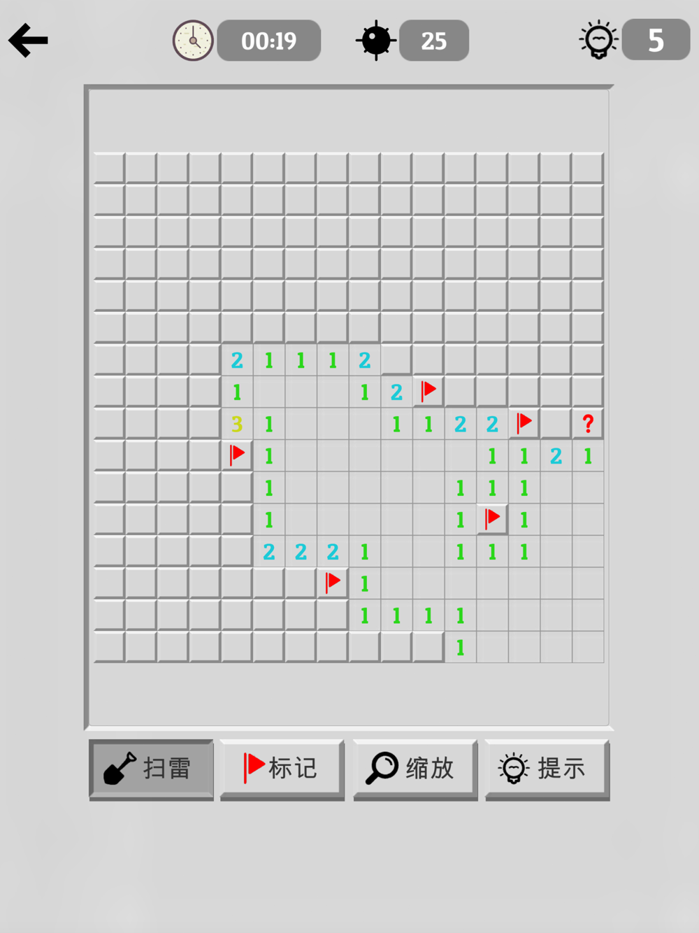 如果您在玩扫雷大师经典: 专业版New时不知道下一步该怎么做,请尝试使用提示按钮帮助您安全地打开一个方块,并为下一步扫雷提供更多帮助。