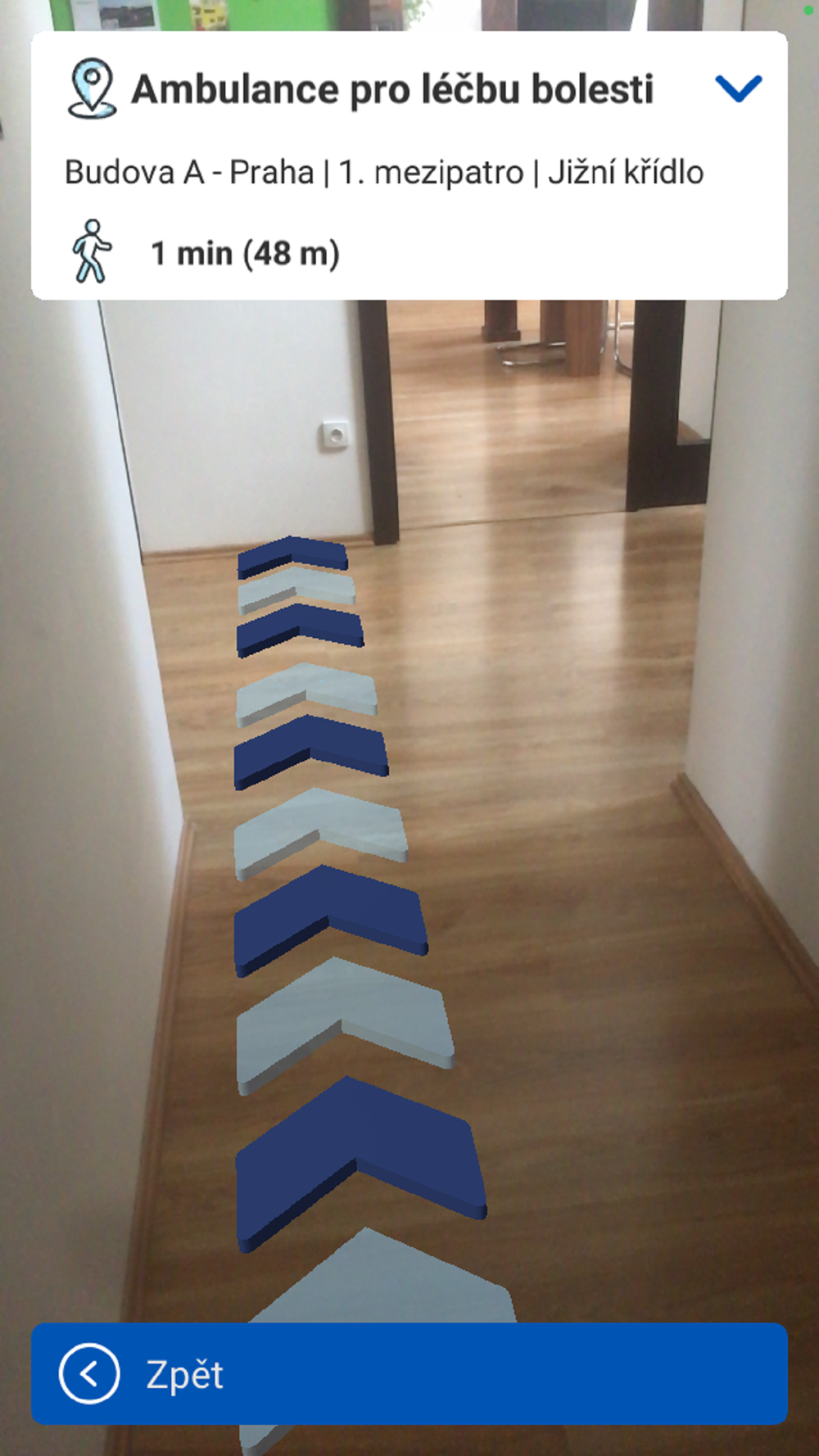 NNF NaviPro vám usnadní orientaci a navigaci v areálu Nemocnice na Františku. Přímo na displeji vašeho mobilního telefonu zobrazí pomocí rozšířené reality navigační šipky a odvede vás z místa vaší aktuální polohy na místo žádané ordinace, recepce, či jiného bodu zájmu.