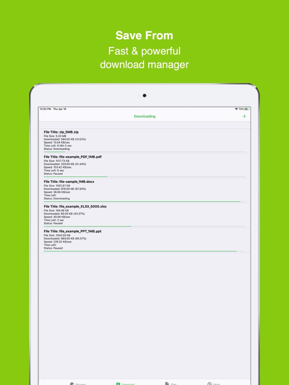 Savefrom is tool download manager unlimited on iPhone, iPad and iPod Touch, with full functional documents viewer.