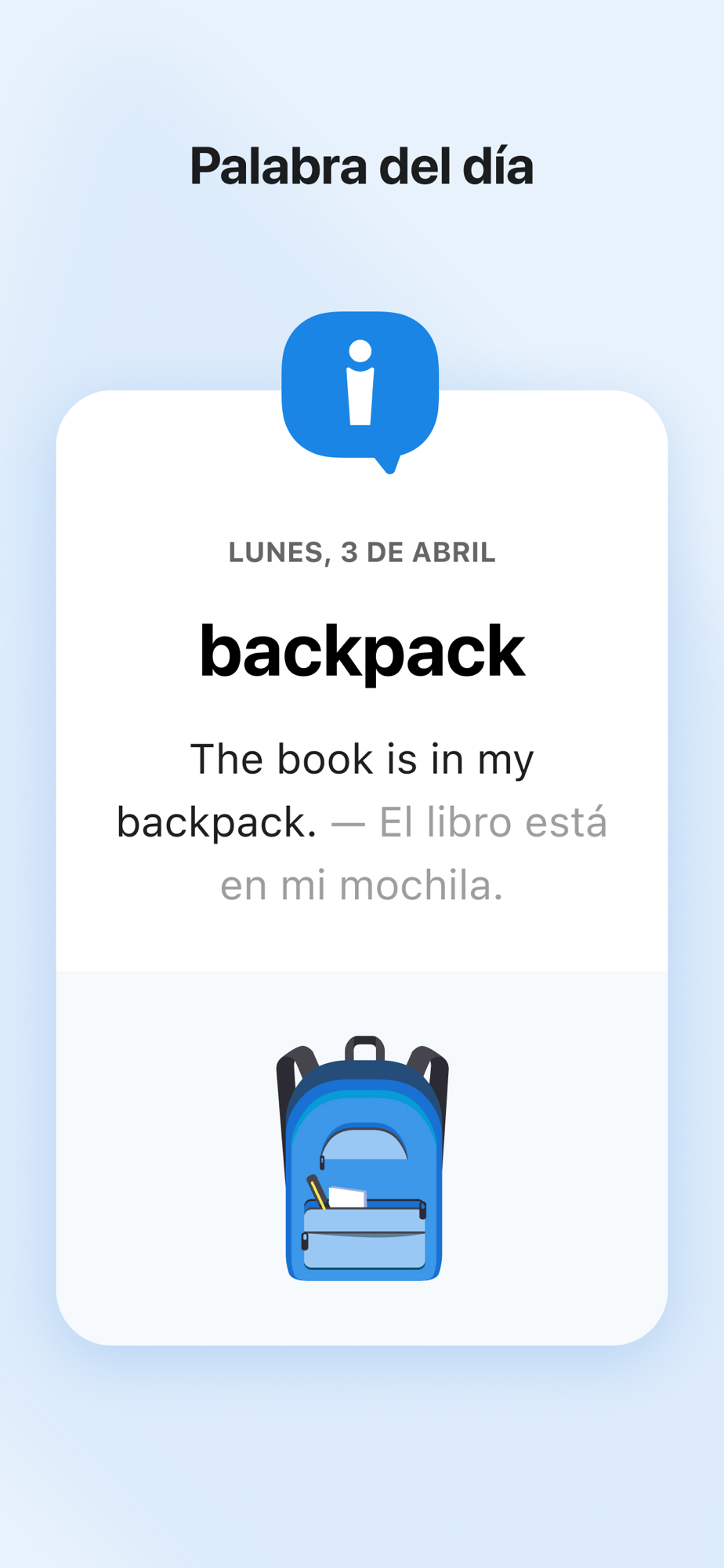 Learn English online or offline for free with inglés.com, the leading English-learning app trusted by millions. Translate anything between Spanish and English, look up the conjugations for every English verb, and practice with our interactive quizzes, lessons, and drills. Watch thousands of pronunciation videos, browse millions of example sentences, and learn a new word each day with the Word of the Day.