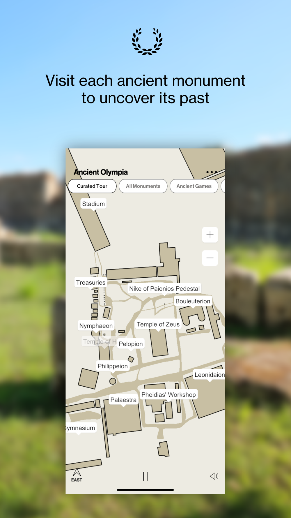 -Guided audio tour of the monuments of Ancient Olympia, available in Greek or English (note that this app is best experienced with the use of personal headphones) — available on-site at Olympia or anywhere in the world