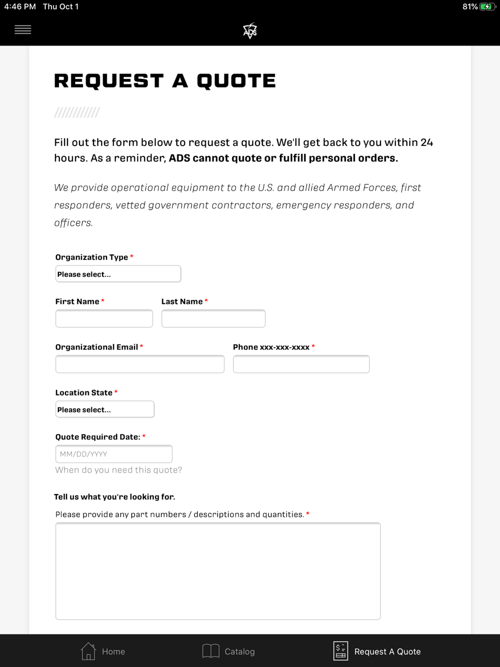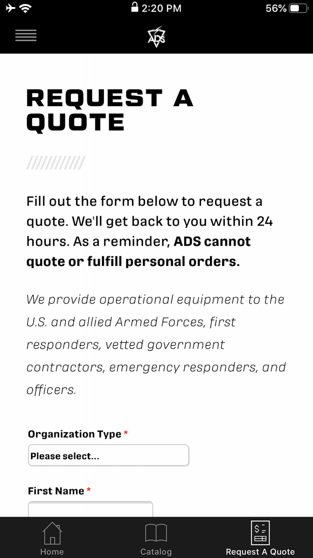 This is just a sampling of the tens of thousands of products we offer. If you don’t see what you’re looking for, just ask. Whether you have funding or need it, ADS is a prime on over 65 contracts and has the power to move your requirement forward. ADS provides operational equipment exclusively to the U.S. and allied Armed Forces, first responders, vetted government contractors, emergency responders and officers. We cannot sell to civilians.