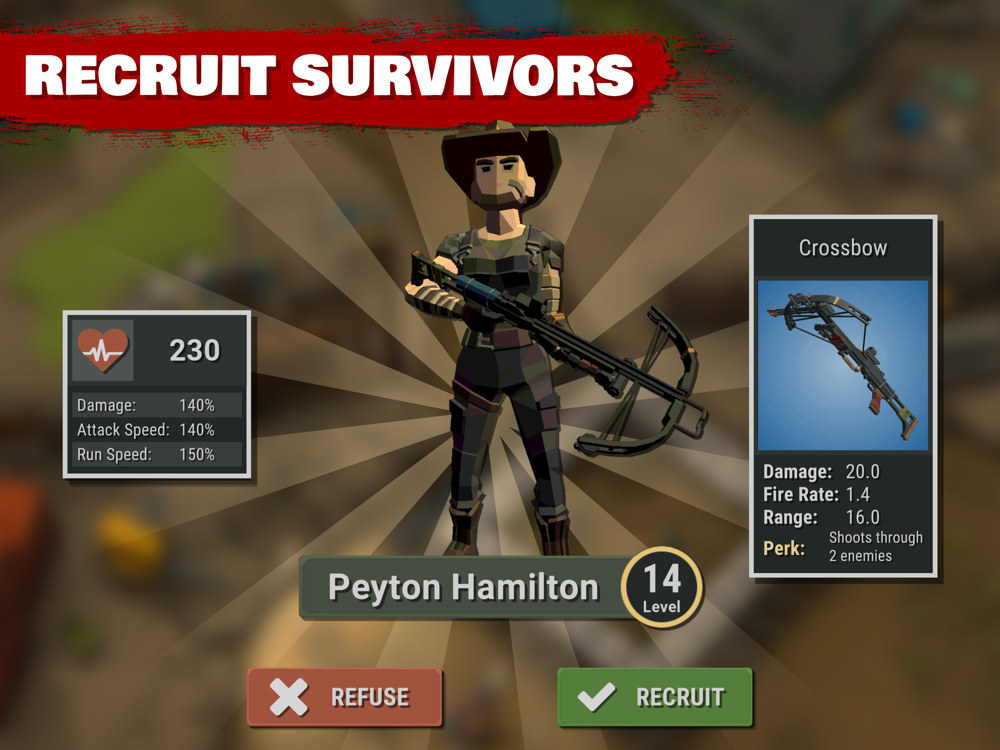 New survivors will hear of your accomplishments with the zeds and may want to join your group. They will bring a weapon with them and will often have improved stats when compared to the survivors in your group. Careful though because you can only support a limited number of survivors so you may have to make a difficult choice.