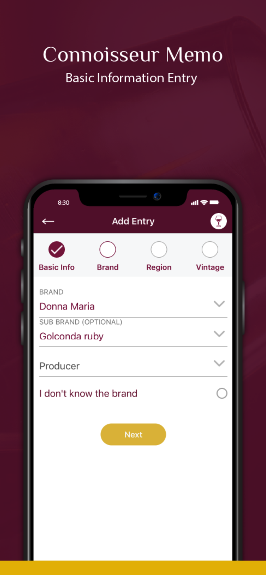 Connoisseur Memo is a tasting & logging app designed for Wine/Whiskey/Beer lovers. The app walks users through the intricate processes of various phases of wine tasting and guides them to pin down the distinct traits and separate the stratum of the innate flavours of these beverages. It enables the connoisseurs to keep a record of their observations, experiences and preferences for future reference.