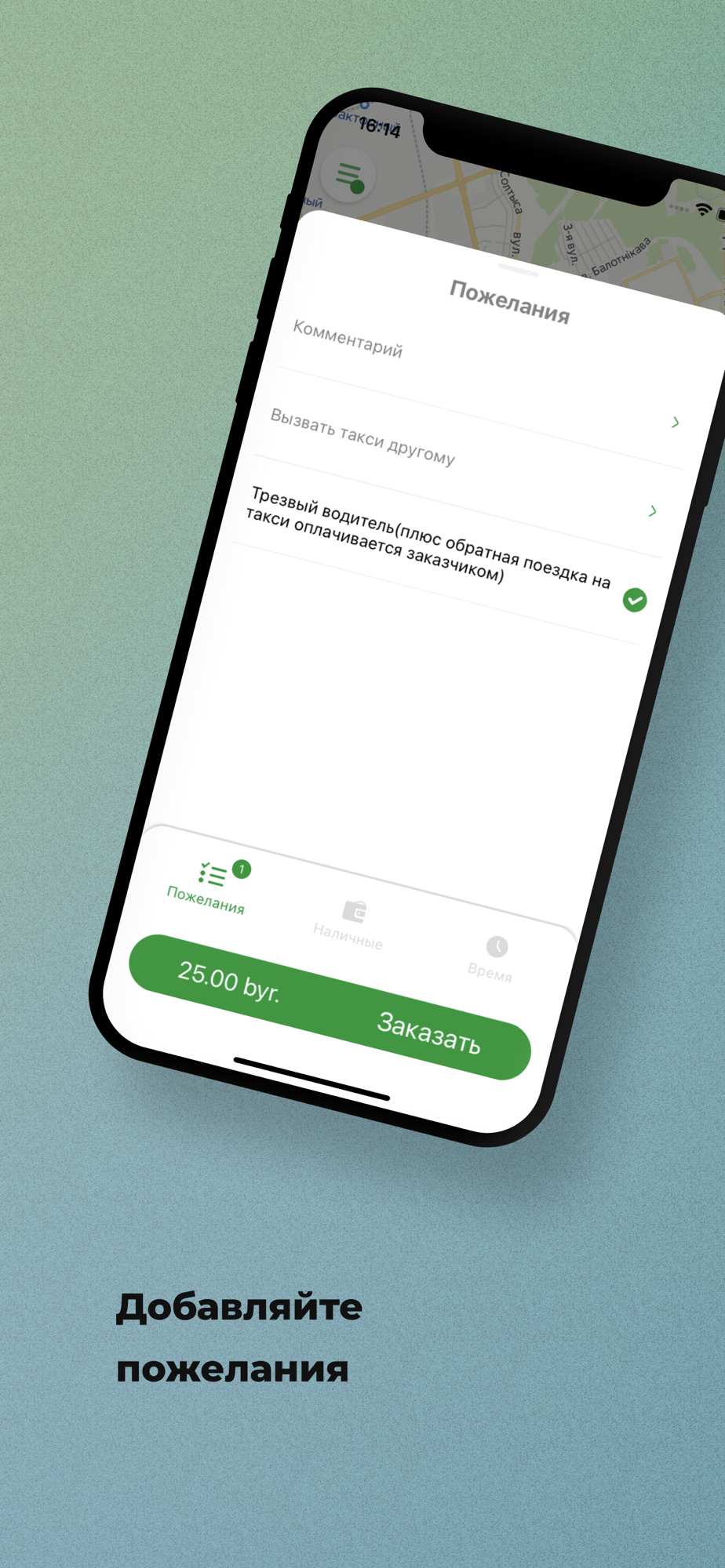 Используйте опцию “Вызвать такси другому” в разделе “Пожелания” и укажите его номер телефона. Когда такси подъедет, на указанный номер придет СМС, а вам — сообщение в приложении.