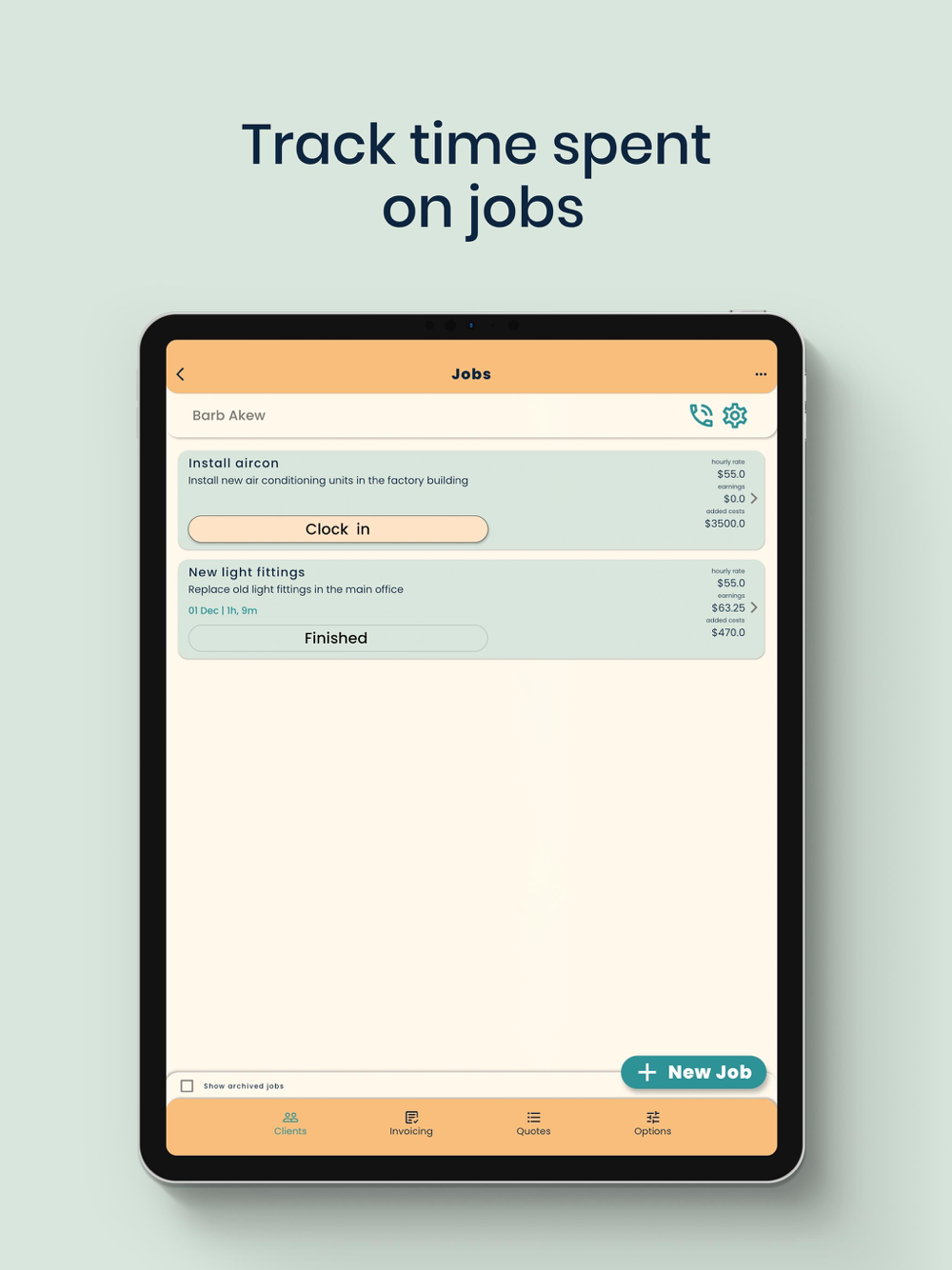 Track time, create and send (or print) quotes and invoices straight from your device wherever you are, whenever you need to.