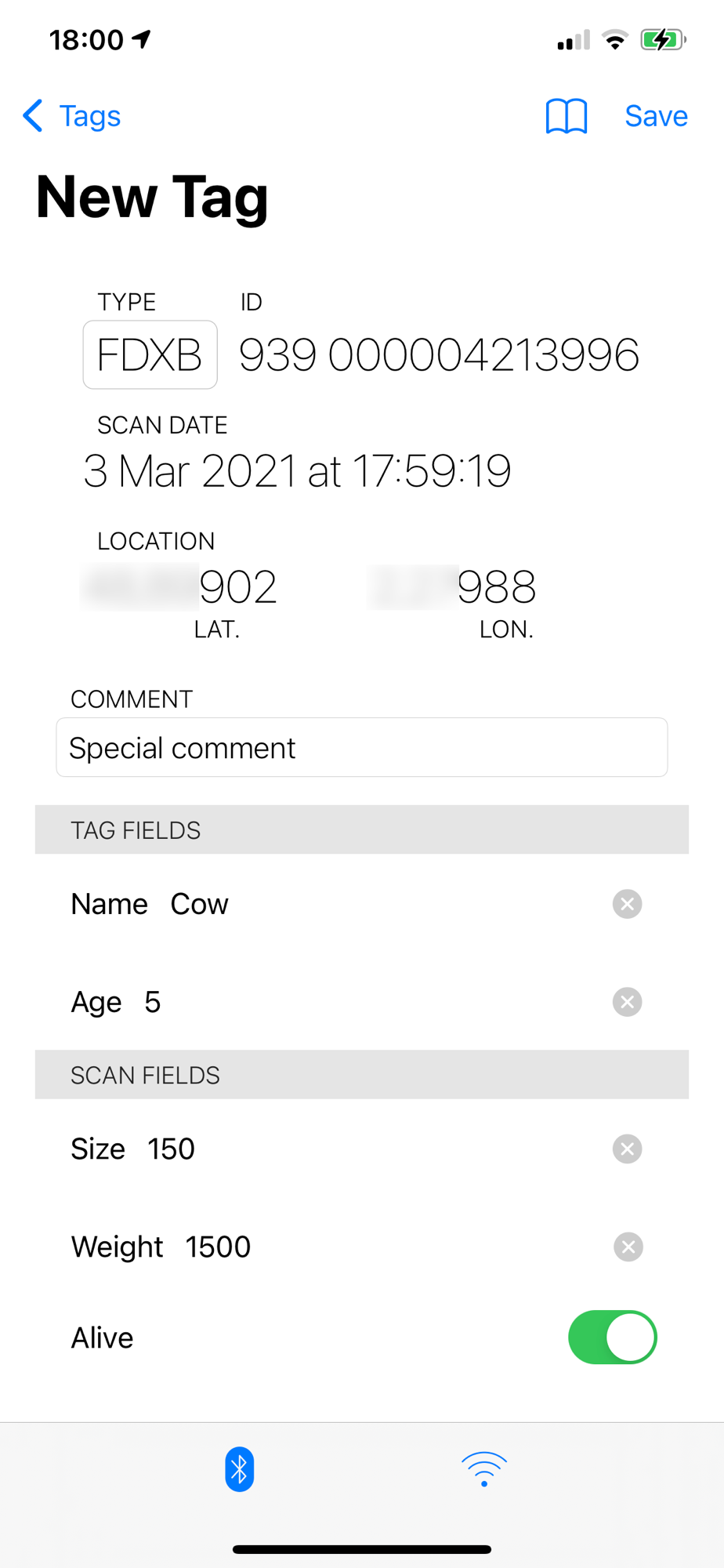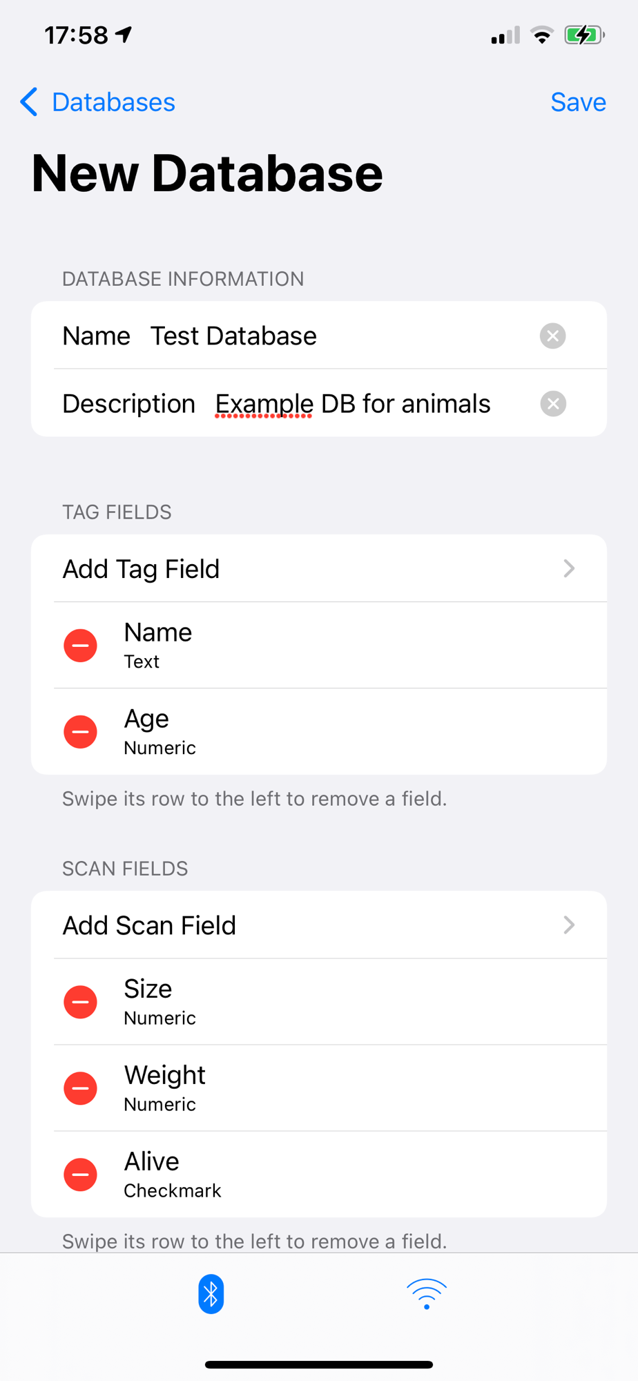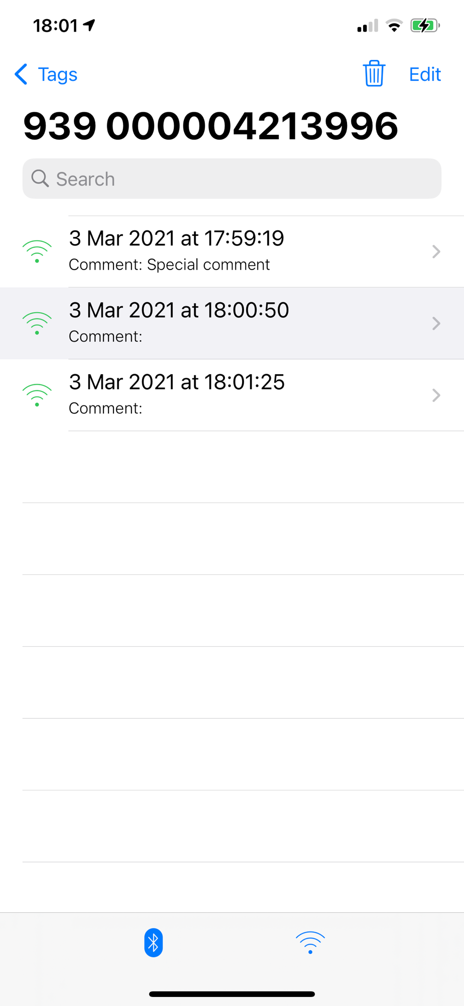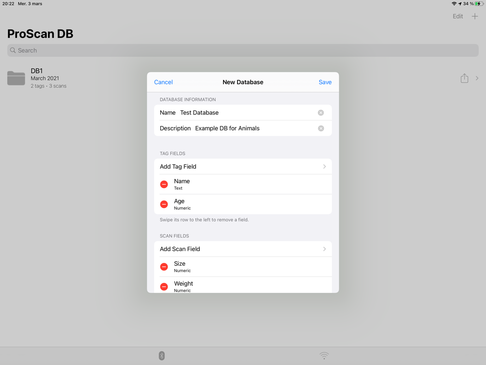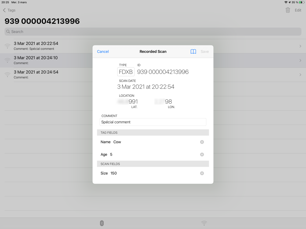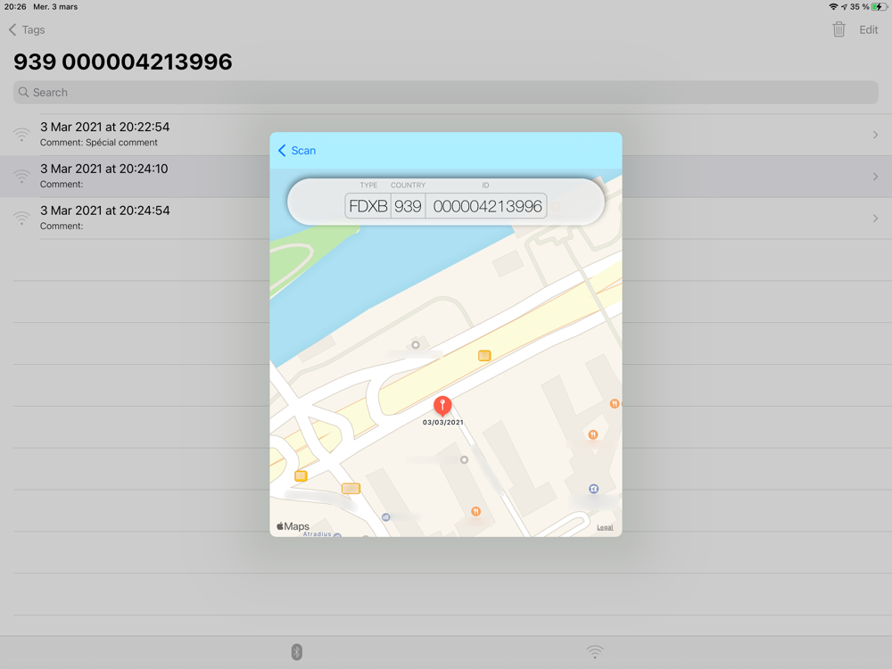 • When a scan is made on the reader, it is stored in the currently selected database, and every scans of each tags are automatically indexed under their parent tag
