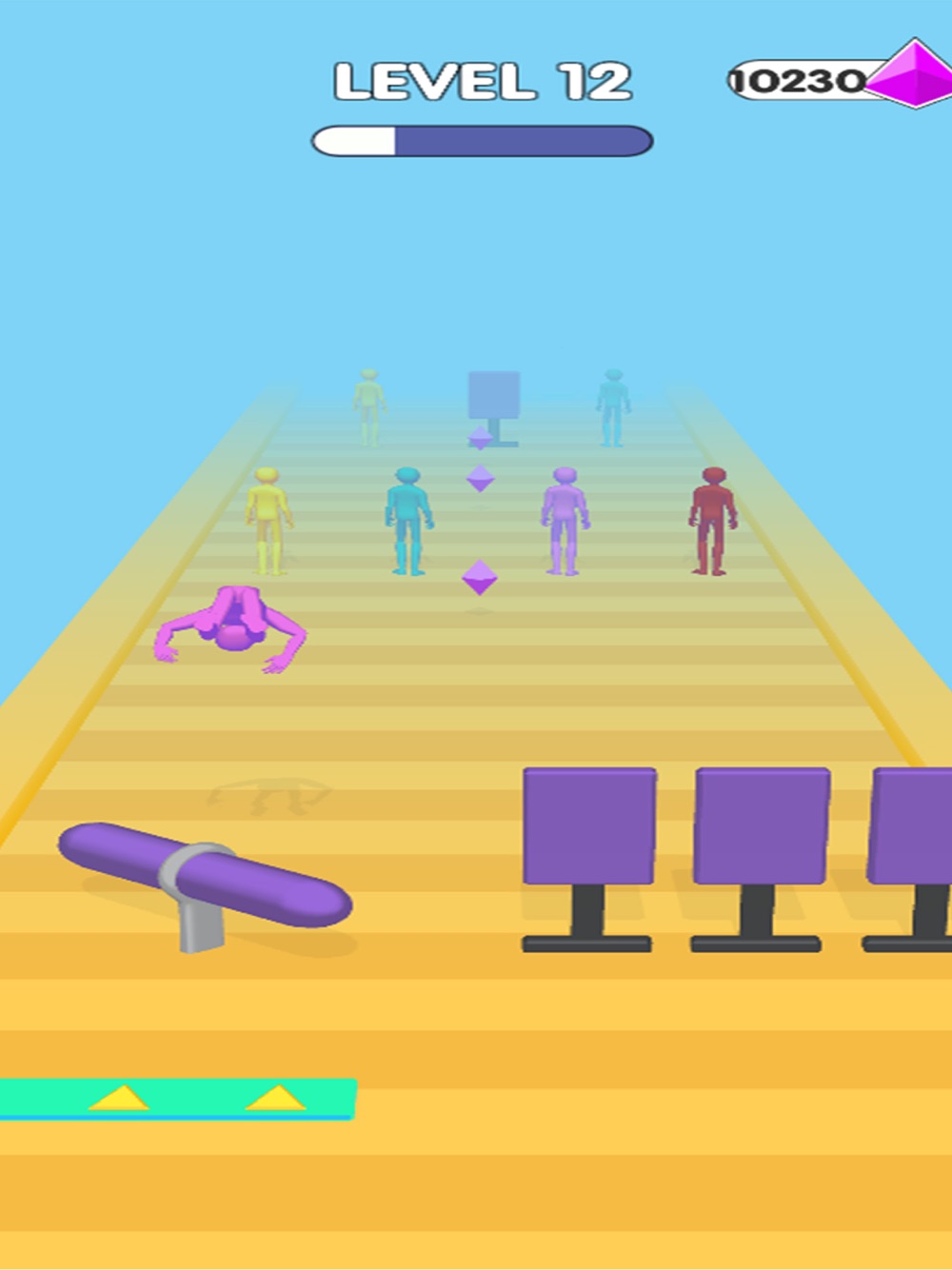 Move and merge the right color humans and gain power, destroy the platforms in a satisfying way!