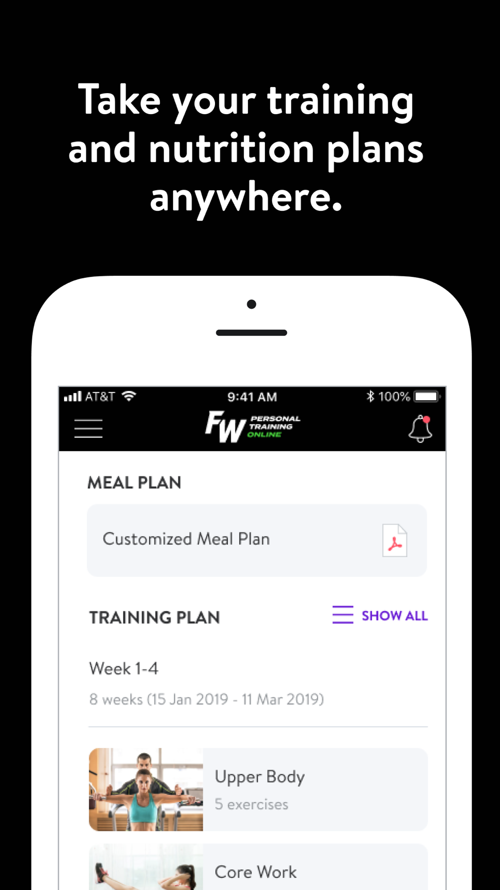 Your goals don't stop, and neither do we. FW | Personal Training Online is the go-to app for Fitness World Personal Training clients. With everything from online sessions to workout tracking, getting after your goals has never been easier.