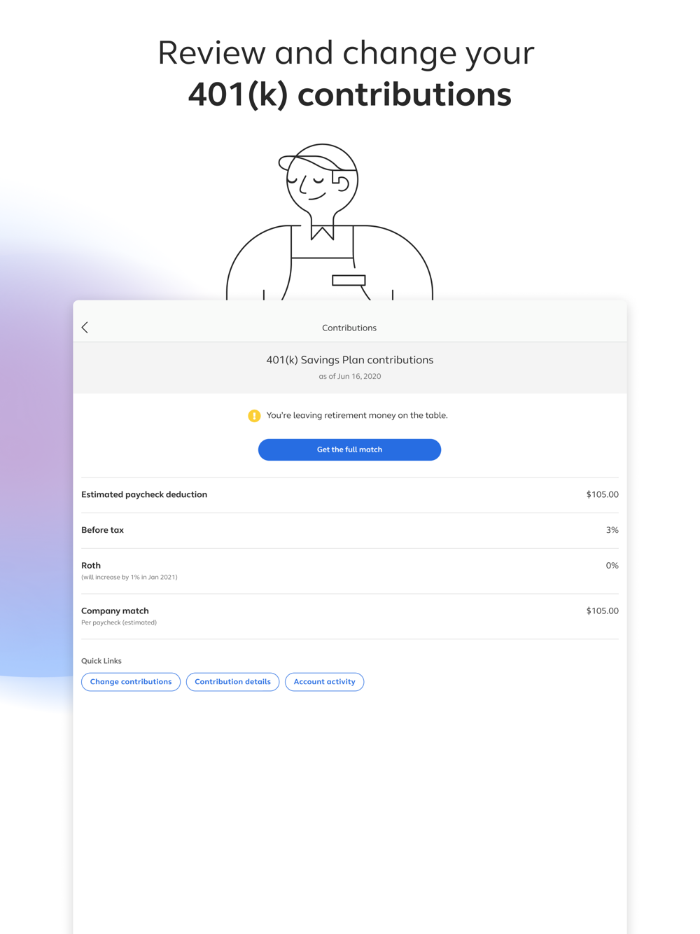 - Review your 401(k) contribution elections and make changes if needed