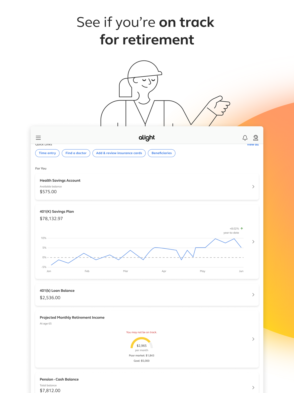 Access your employer benefits – health, retirement and payroll details anytime, anywhere.