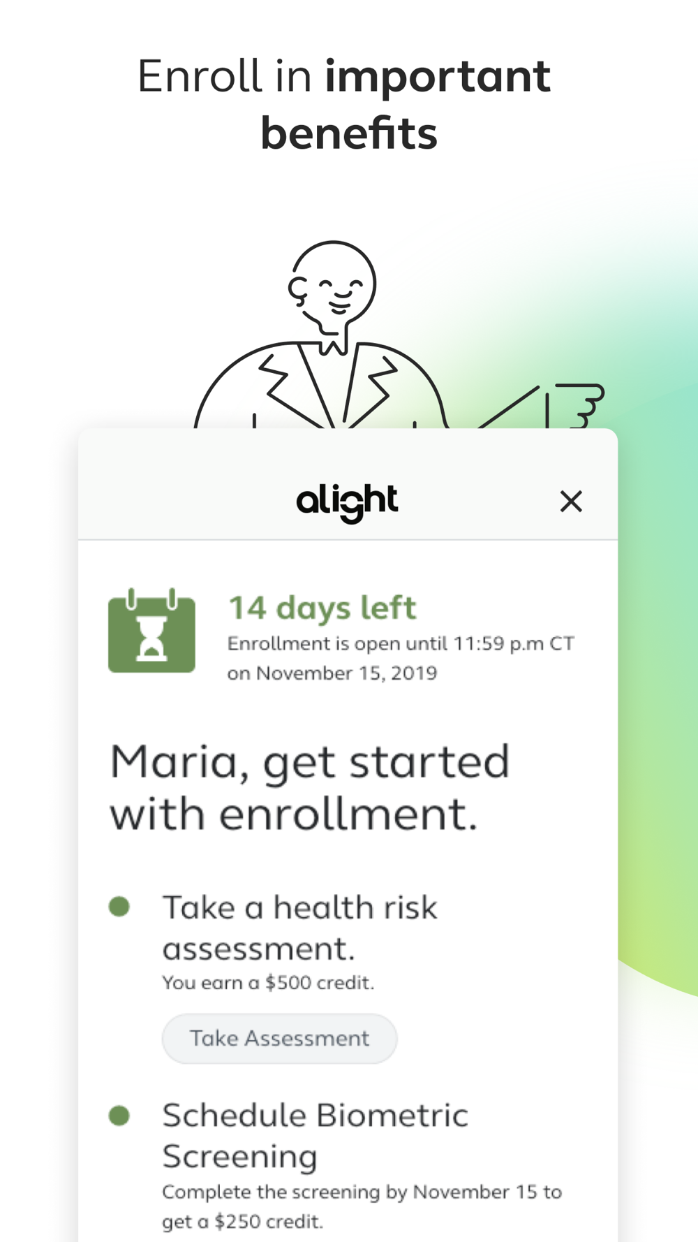 Alight mobile app is available for any employee and benefit participants of companies that partner with Alight Solutions to administer their HR and benefit programs. Once logged in, you can access your personal benefits information wherever and whenever needed.