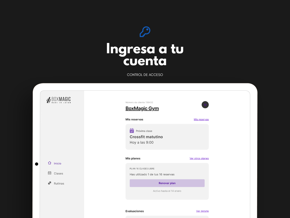 Te permitirá acceder rápidamente a tu perfil, reservar tus clases y agregar el progreso de tu ejercicios en tu centro deportivo.