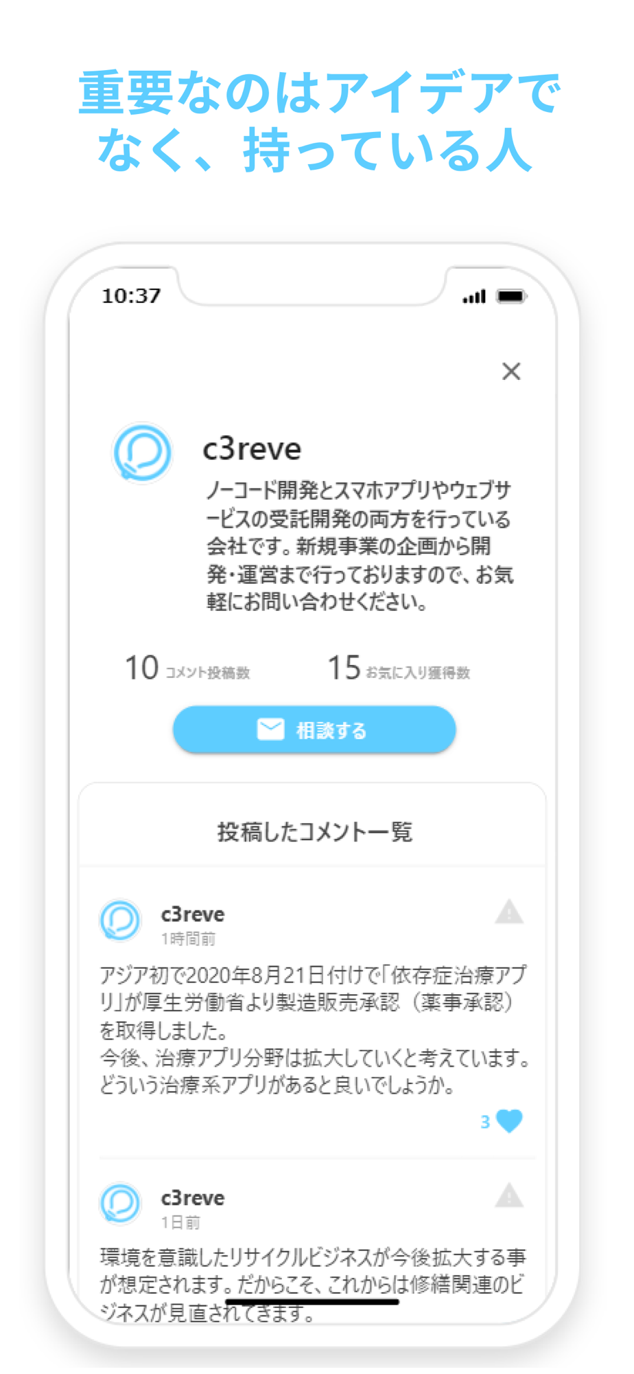 投稿したアイデアに関して、知見のある方や興味のある方がアドバイスをしてくれます。