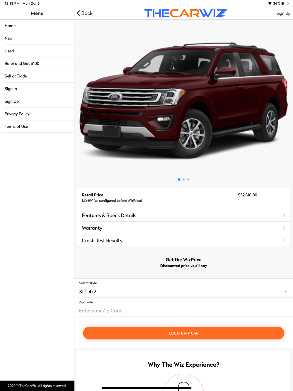 Get personalized price, terms, and more on vehicles available for delivery or pickup. With TheCarWiz app, get expert service and customized support, whether you’re buying a new or used car, selling, or trading-in.