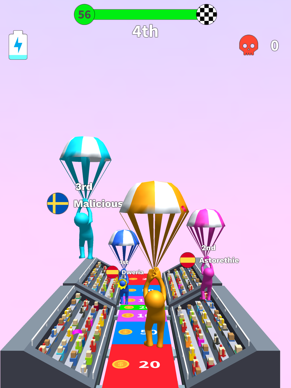 Show your skills to other players. Reach the finish line before other players. Open your parachute for extra coin.